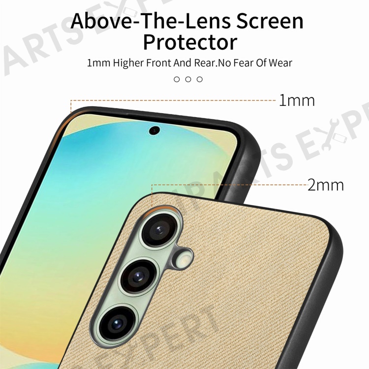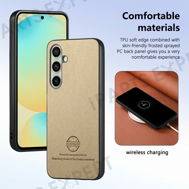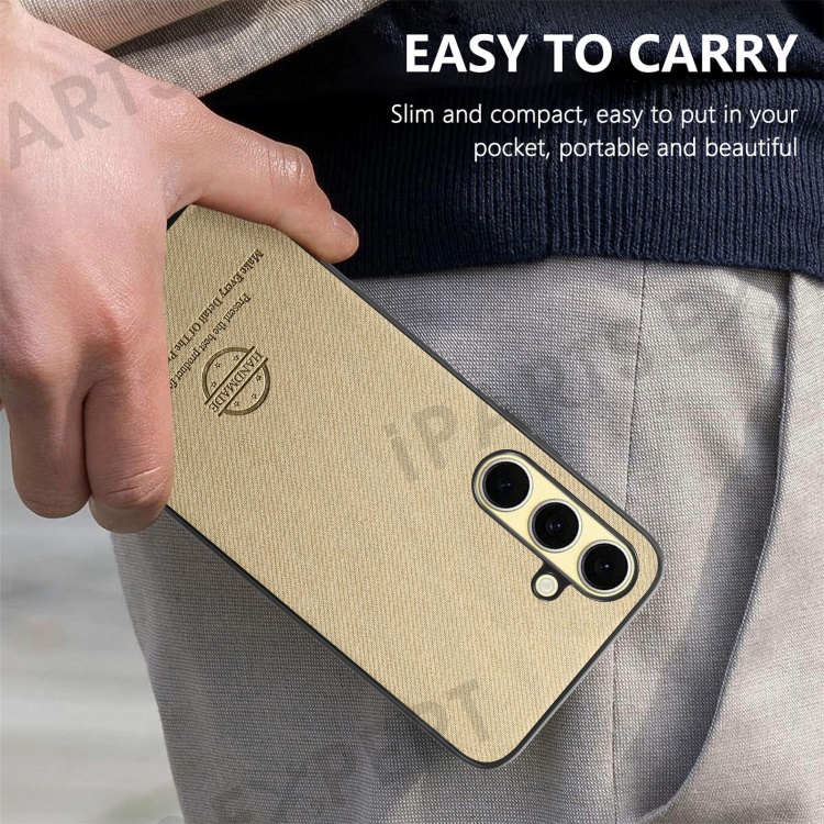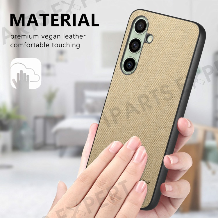 For Samsung Galaxy S24+ Case Cloth Texture Leather+PC+TPU Anti-Drop Phone Cover - Khaki