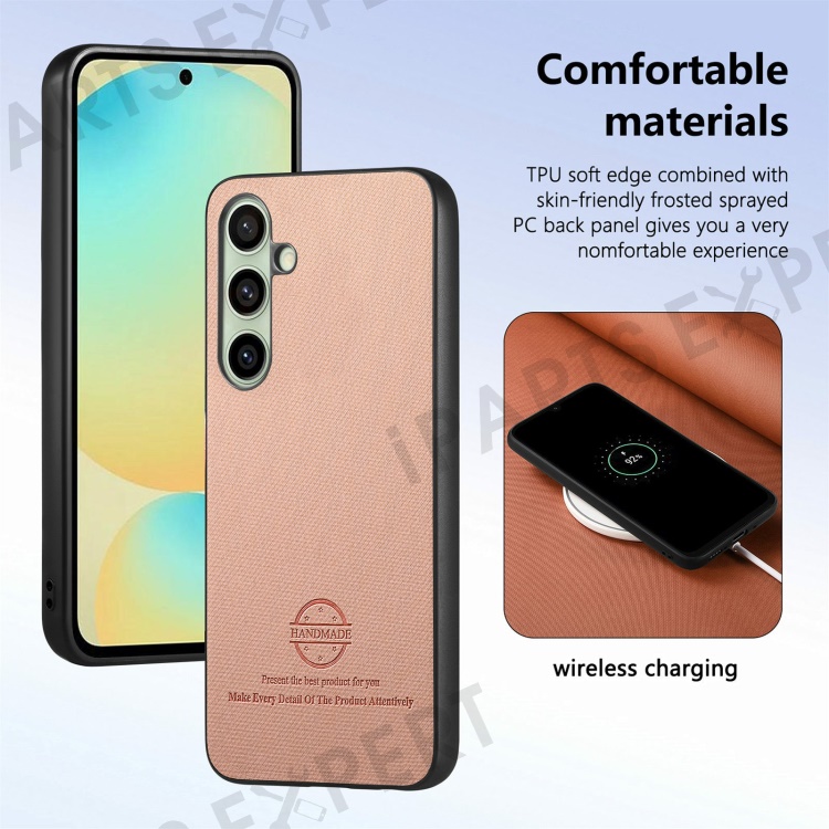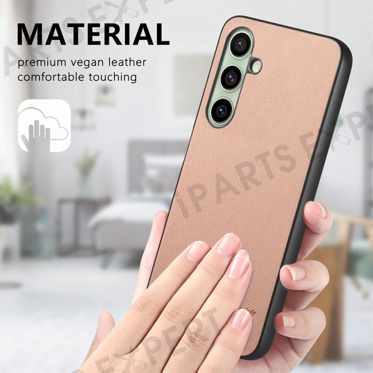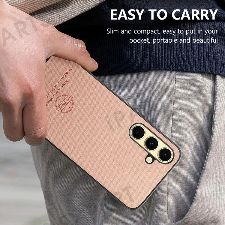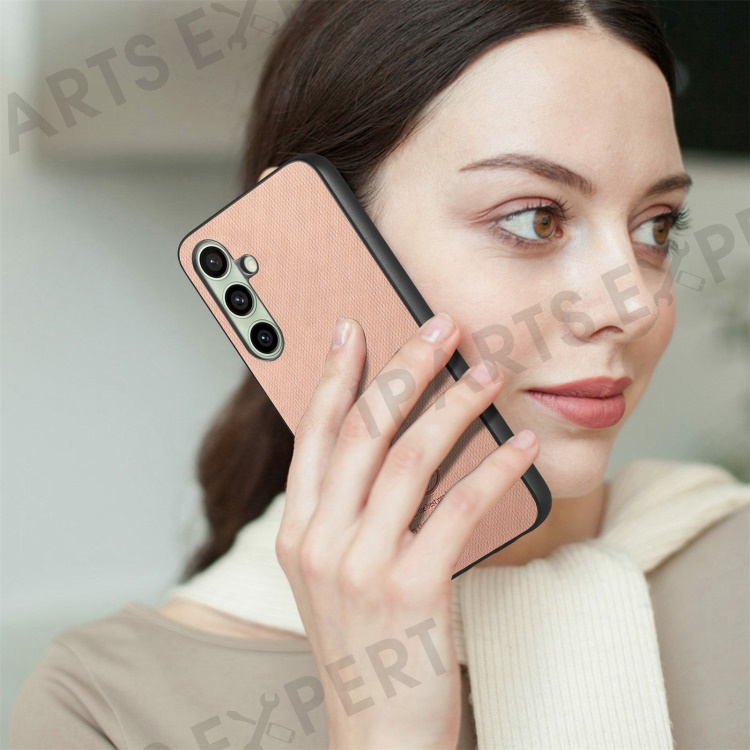 For Samsung Galaxy S24+ Case Cloth Texture Leather+PC+TPU Anti-Drop Phone Cover - Pink
