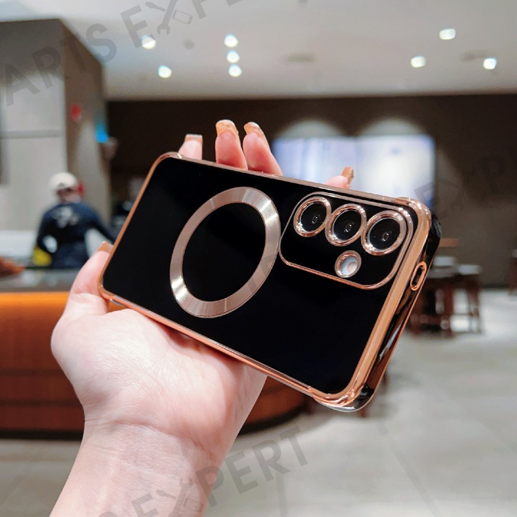 For Samsung Galaxy S24+ Magnetic Case Electroplating TPU Phone Cover - Black