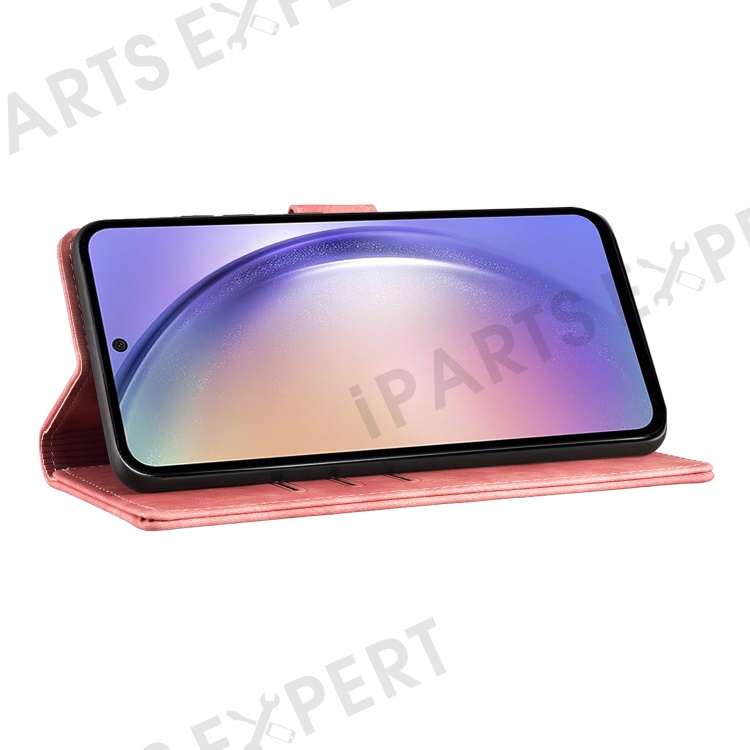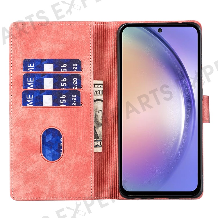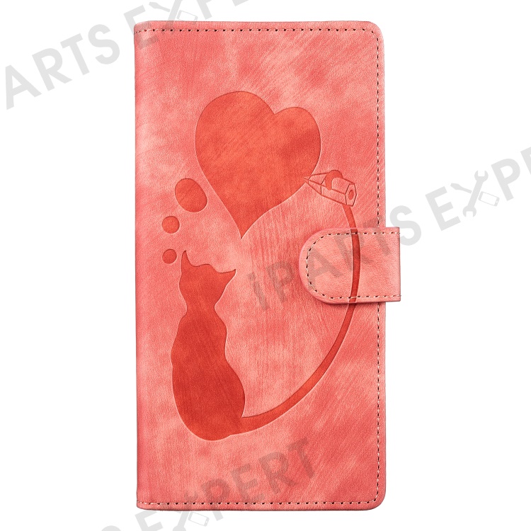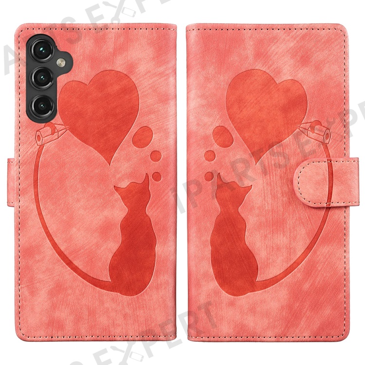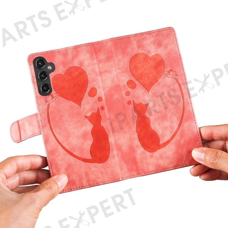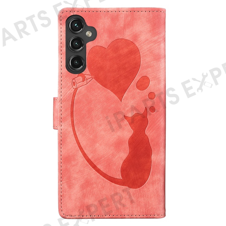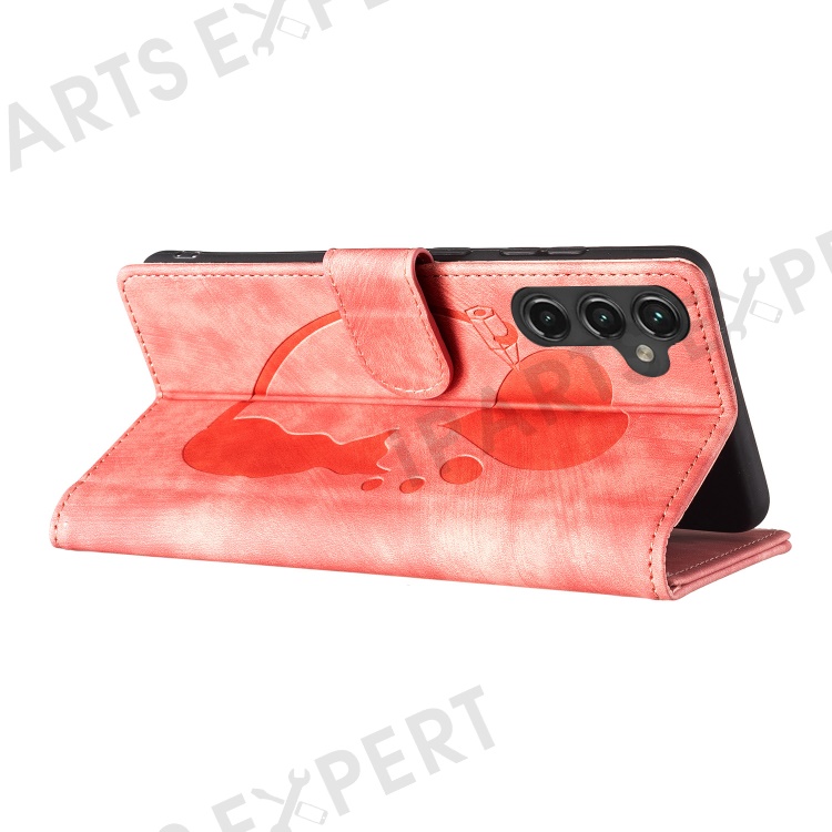 For Samsung Galaxy S25+ / S24+ Case Cute Cat Imprint PU Leather Wallet Phone Cover - Pink