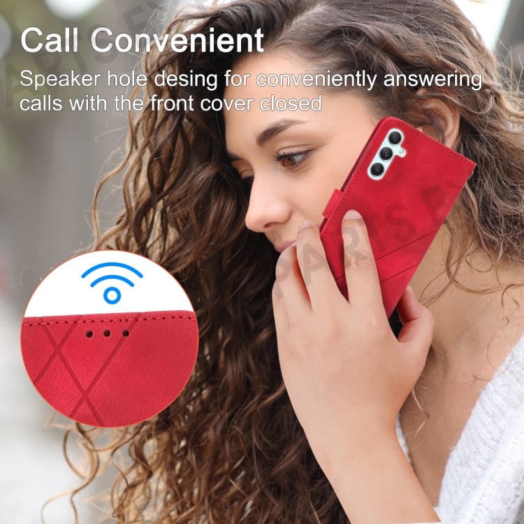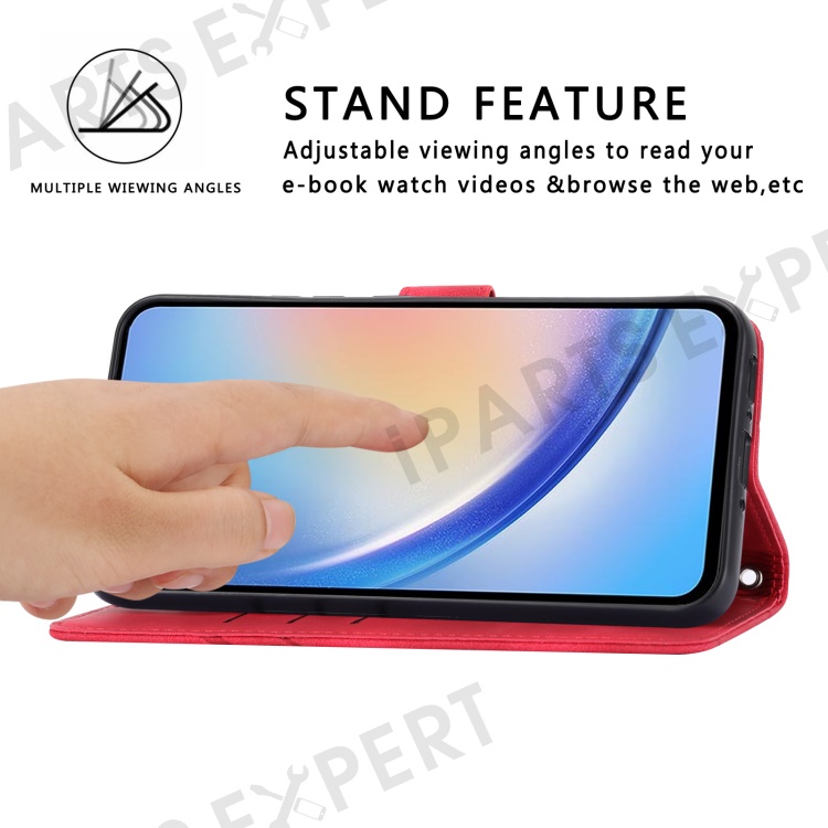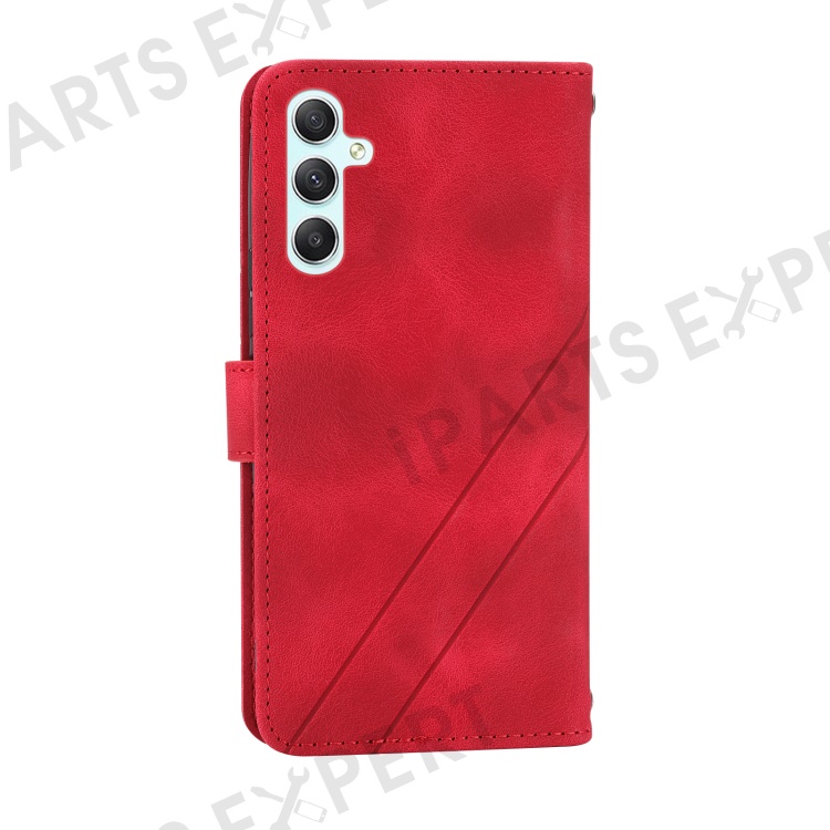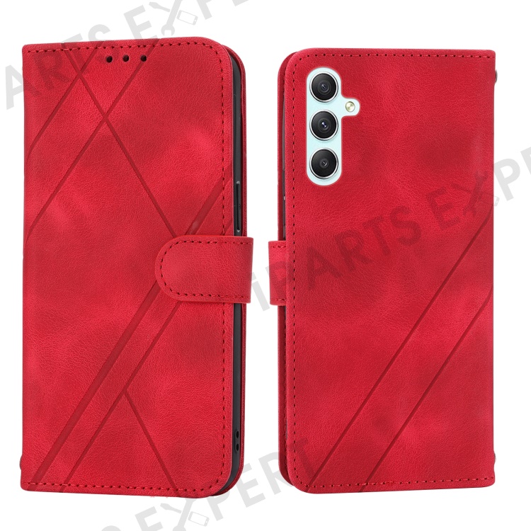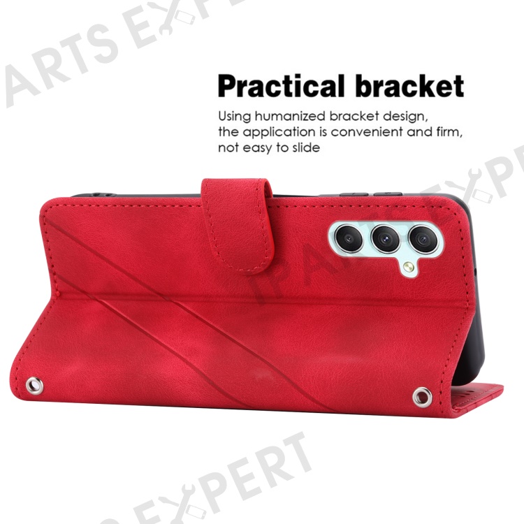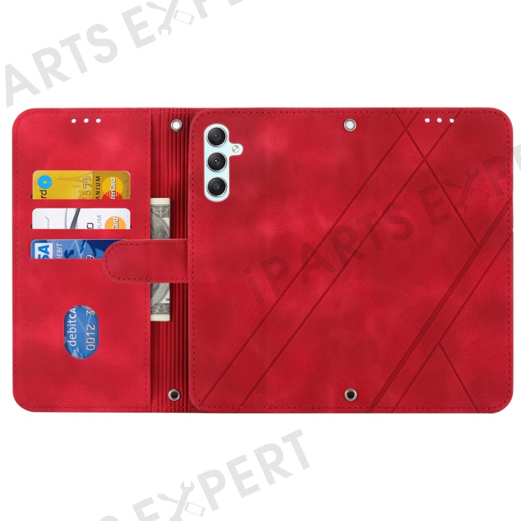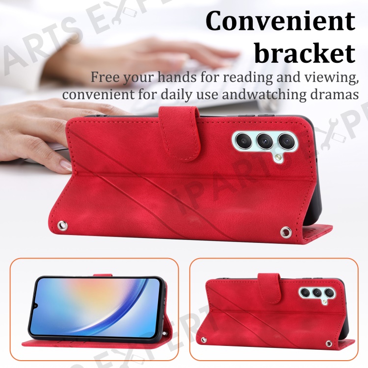 For Samsung Galaxy S24 Case Imprinted Line Wallet Phone Cover with Handy Strap - Red