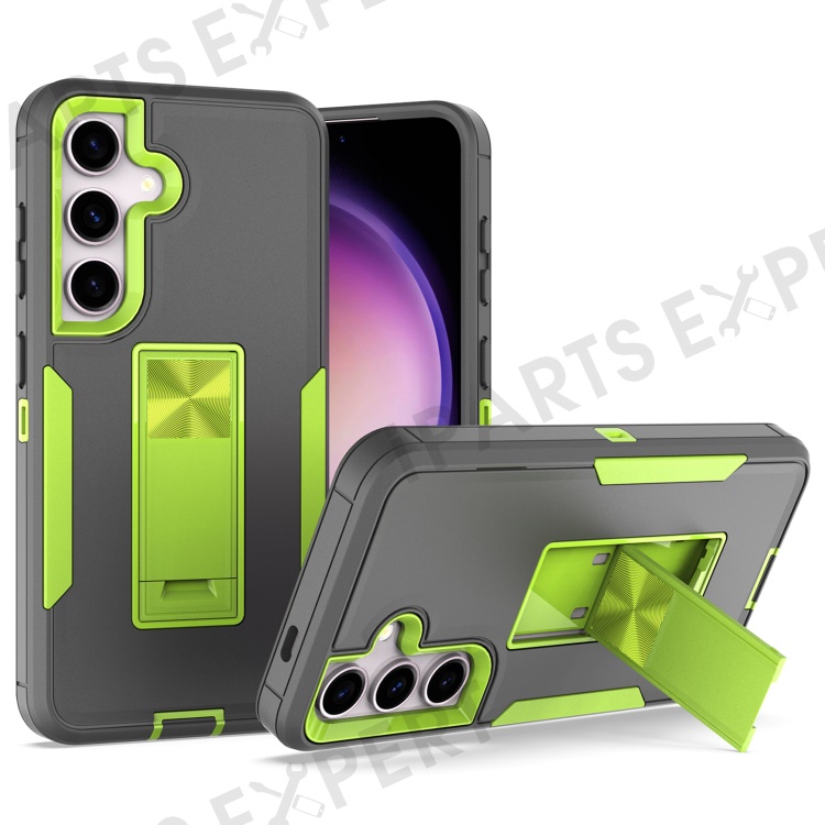 For Samsung Galaxy S24 Case Protective TPU+PC Kickstand Phone Cover - Grey / Green