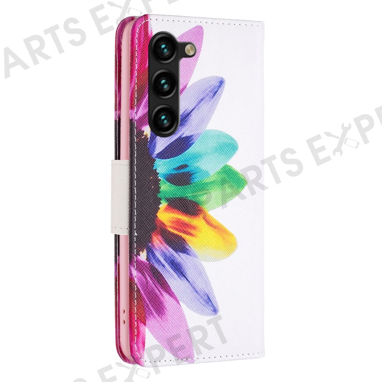 For Samsung Galaxy S25+ / S24+ Case PU Leather Pattern Flip Wallet Smart Phone Cover - Sunflower