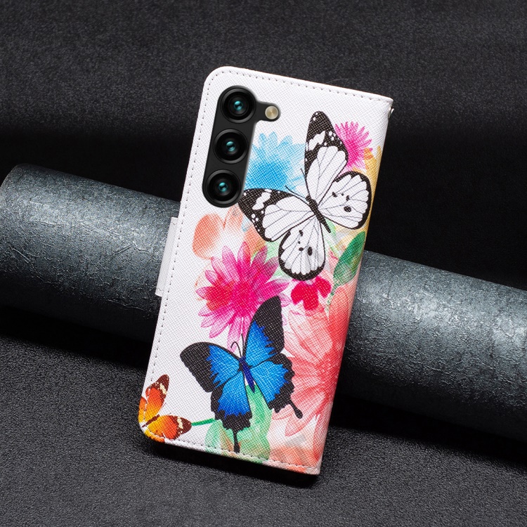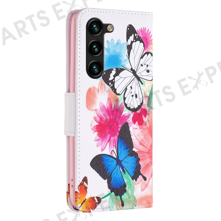 For Samsung Galaxy S25+ / S24+ Case PU Leather Pattern Flip Wallet Smart Phone Cover - Two Butterflies