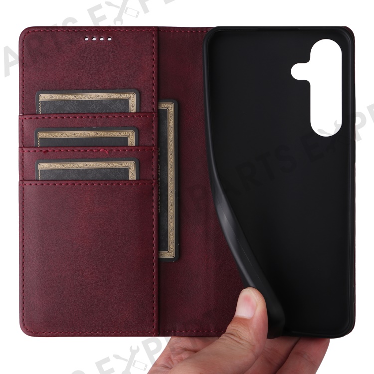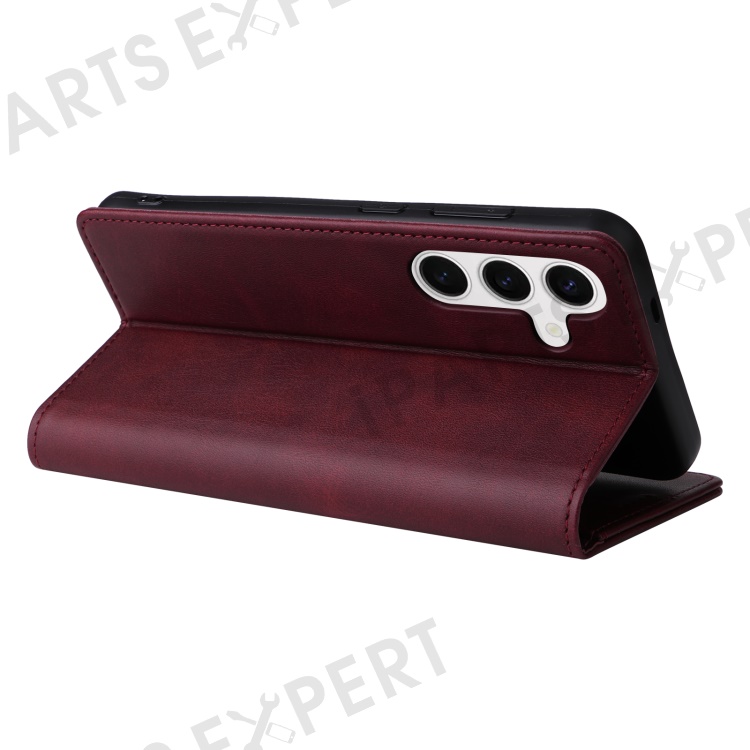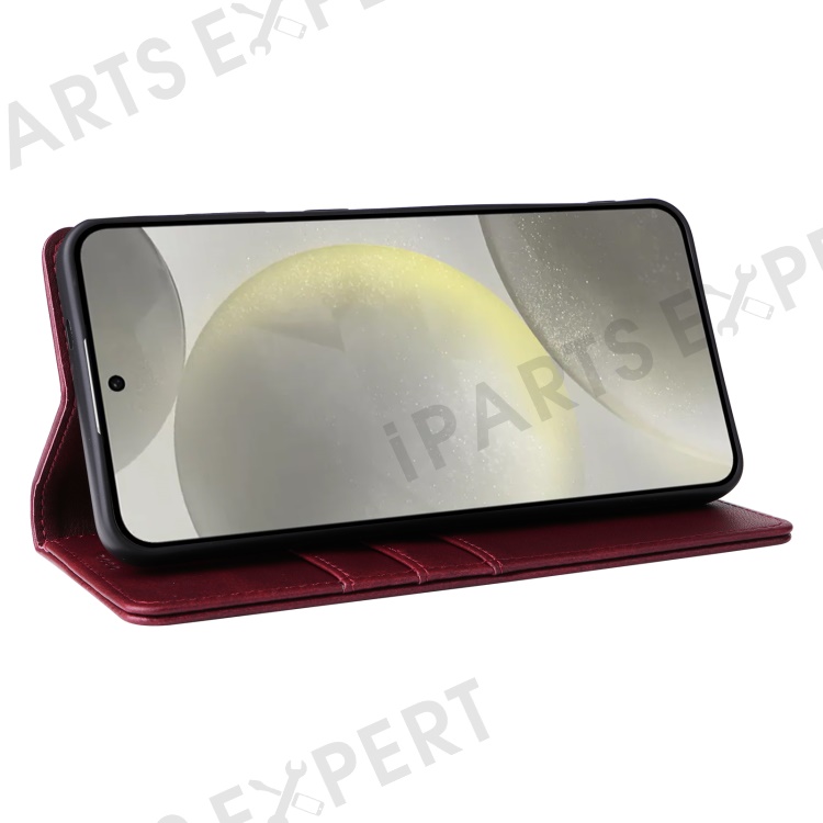For Samsung Galaxy S25+ / S24+ Case RFID Blocking PU Leather Flip Phone Cover - Wine Red
