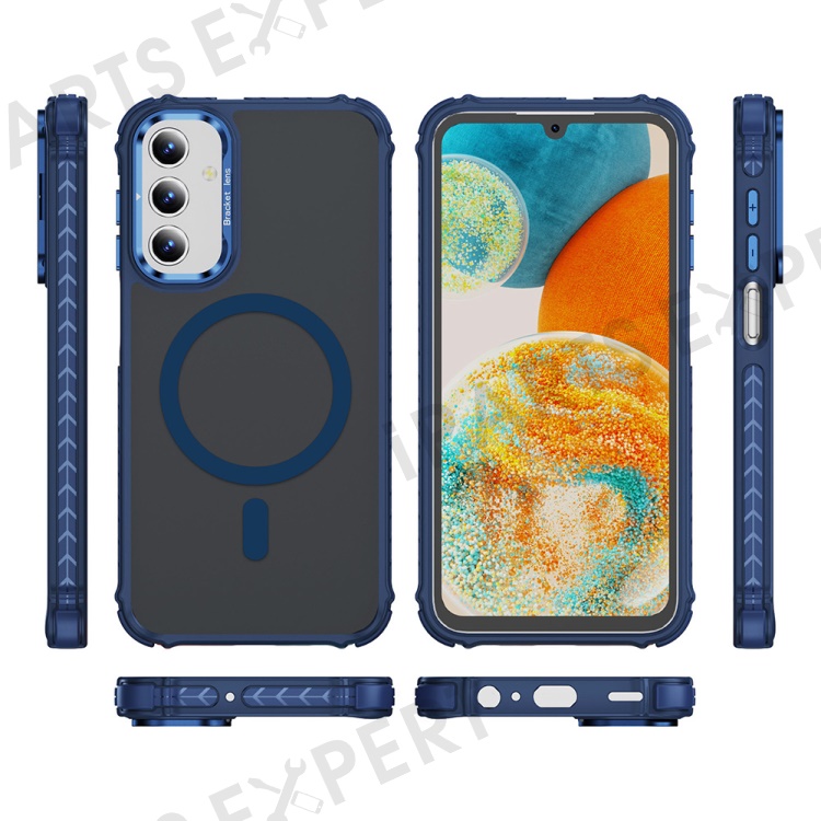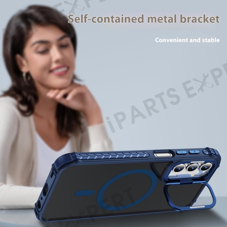 For Samsung Galaxy S24+ Case with Lens Kickstand Matte Back Cover Magnetic Case - Blue