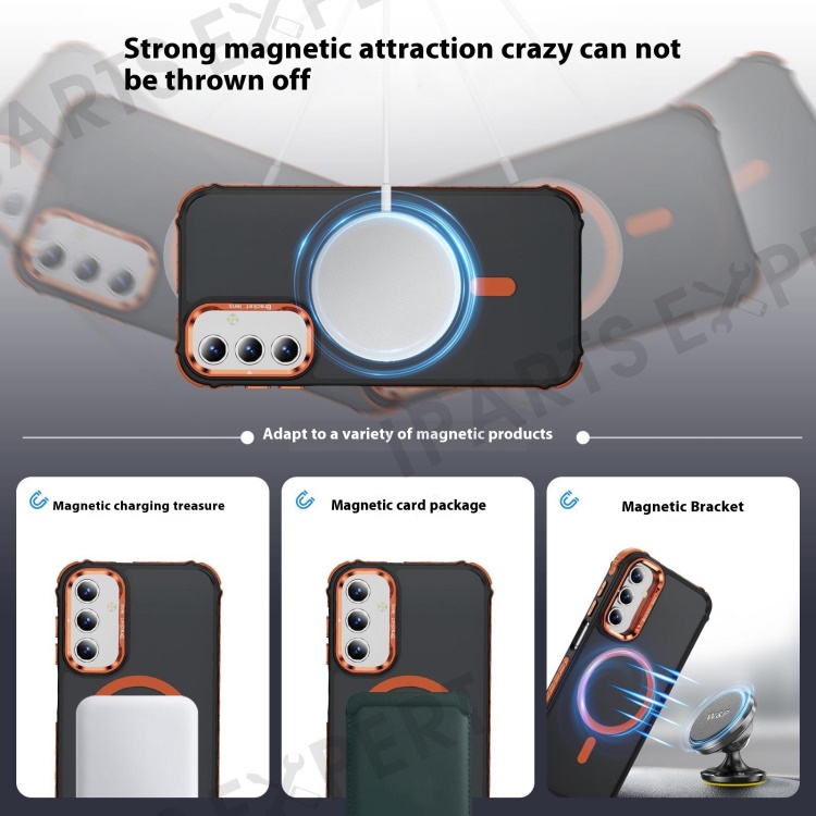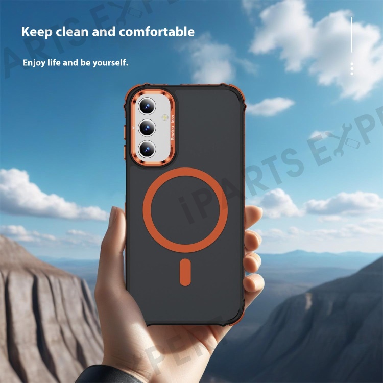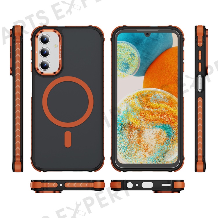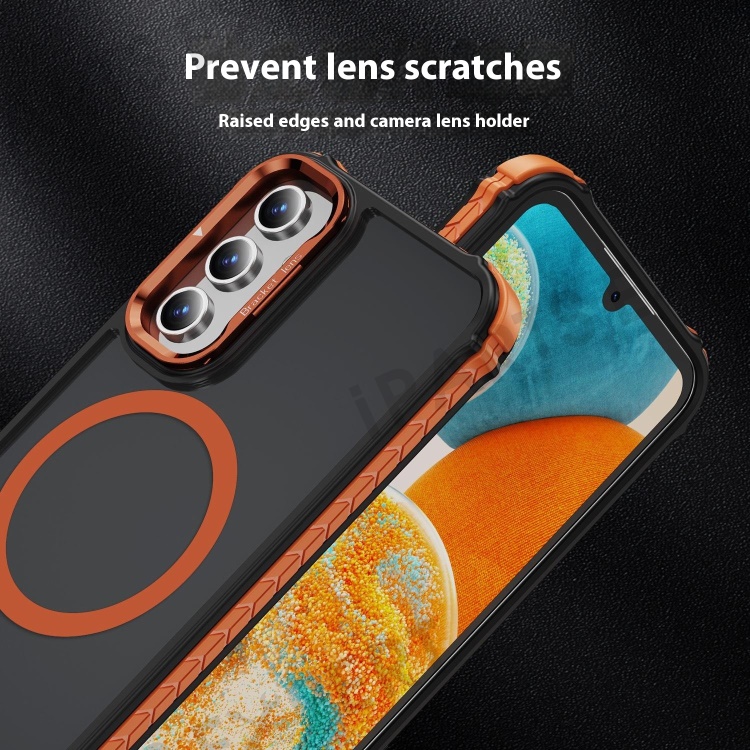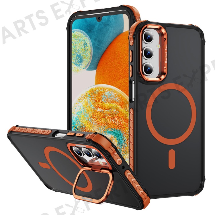For Samsung Galaxy S24+ Case with Lens Kickstand Matte Back Cover Magnetic Case - Orange
