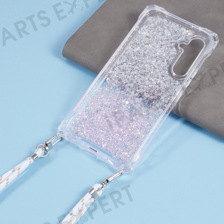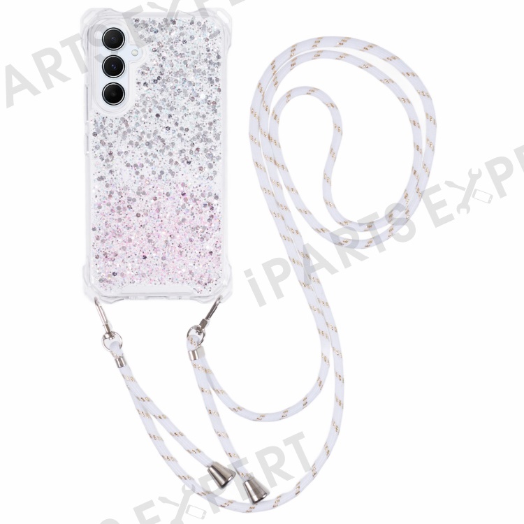 For Samsung Galaxy S24+ Cover Gradient Shockproof TPU+Acrylic Cell Phone Case with Carrying Strap - Silver+Pink