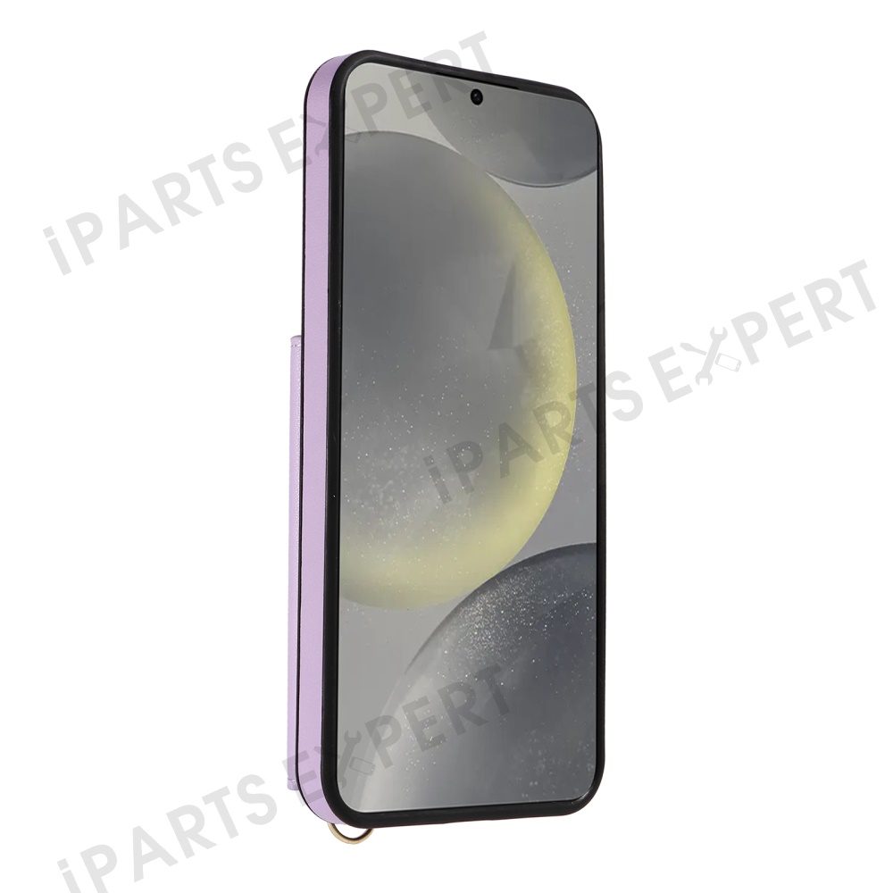 For Samsung Galaxy S24+ Crossbody Phone Case Card Holder Kickstand Leather Coated TPU Mobile Cover - Purple