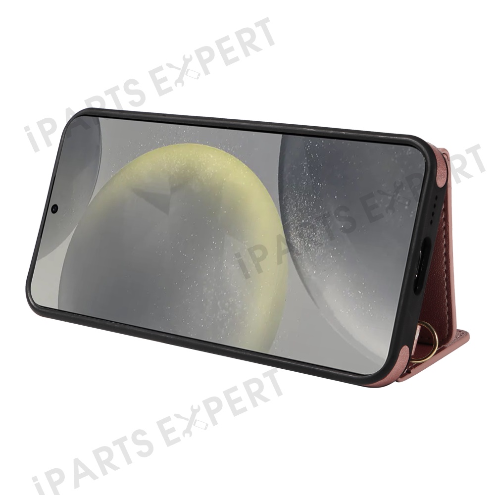 For Samsung Galaxy S24+ Crossbody Phone Case Card Holder Kickstand Leather Coated TPU Mobile Cover - Rose Gold