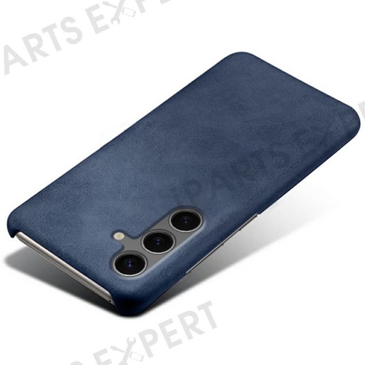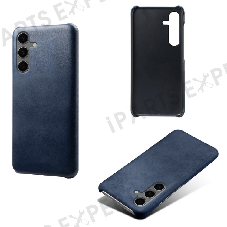 For Samsung Galaxy S24 FE 5G Case Calf Texture PU Leather Hard PC Protective Phone Cover - Blue