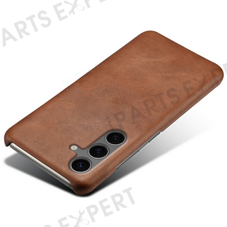 For Samsung Galaxy S24 FE 5G Case Calf Texture PU Leather Hard PC Protective Phone Cover - Brown