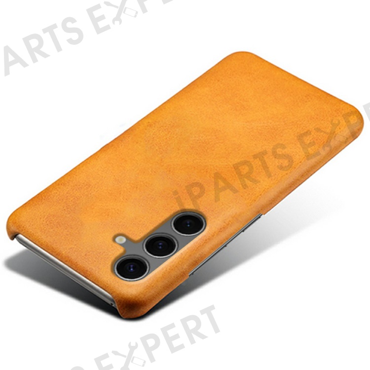 For Samsung Galaxy S24 FE 5G Case Calf Texture PU Leather Hard PC Protective Phone Cover - Orange