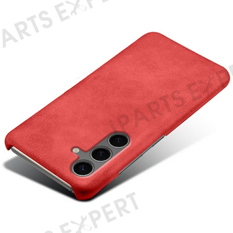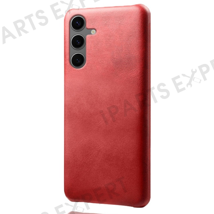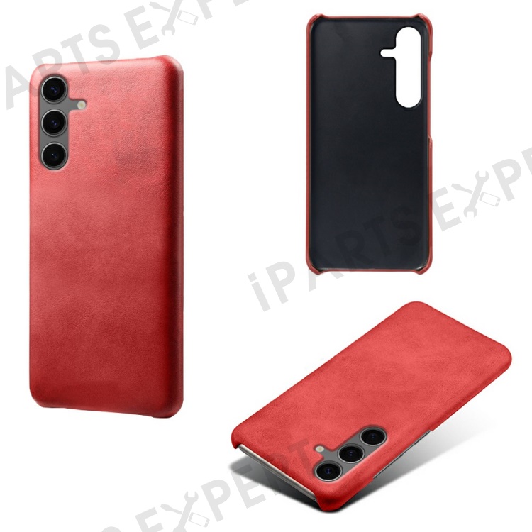 For Samsung Galaxy S24 FE 5G Case Calf Texture PU Leather Hard PC Protective Phone Cover - Red