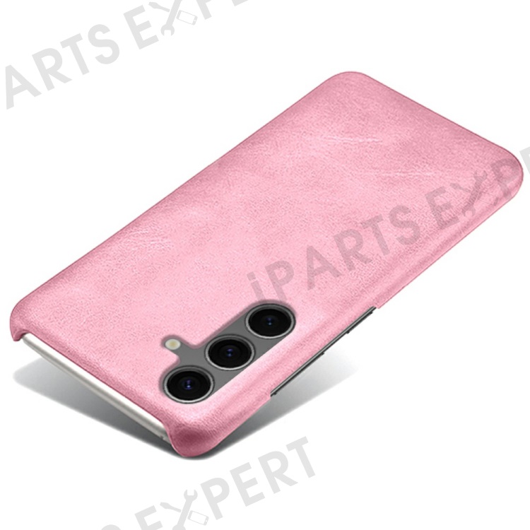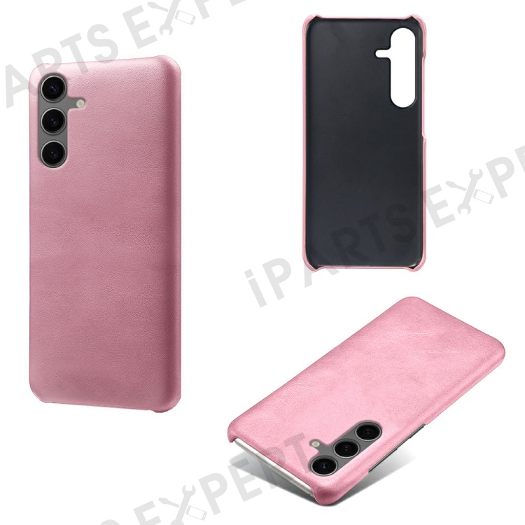 For Samsung Galaxy S24 FE 5G Case Calf Texture PU Leather Hard PC Protective Phone Cover - Rose Gold