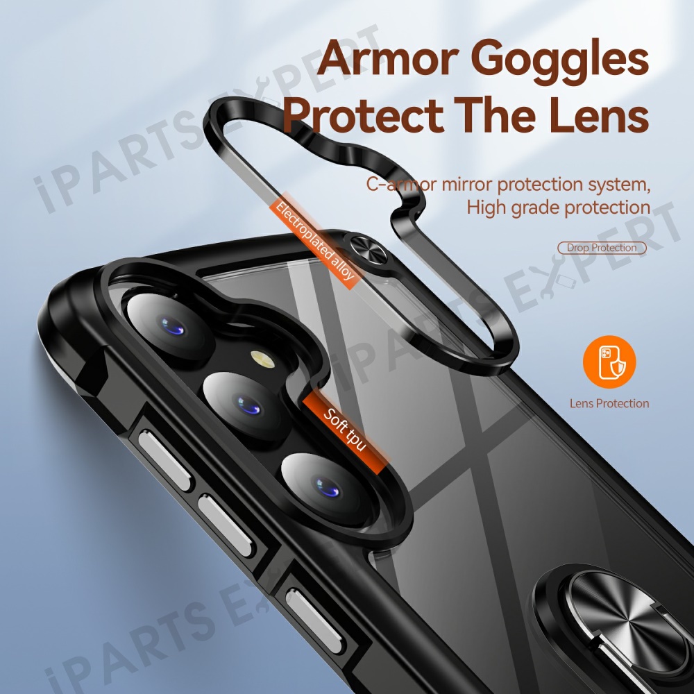 For Samsung Galaxy S24 FE Case Alloy Lens Frame PC + TPU Kickstand Phone Back Cover - Black