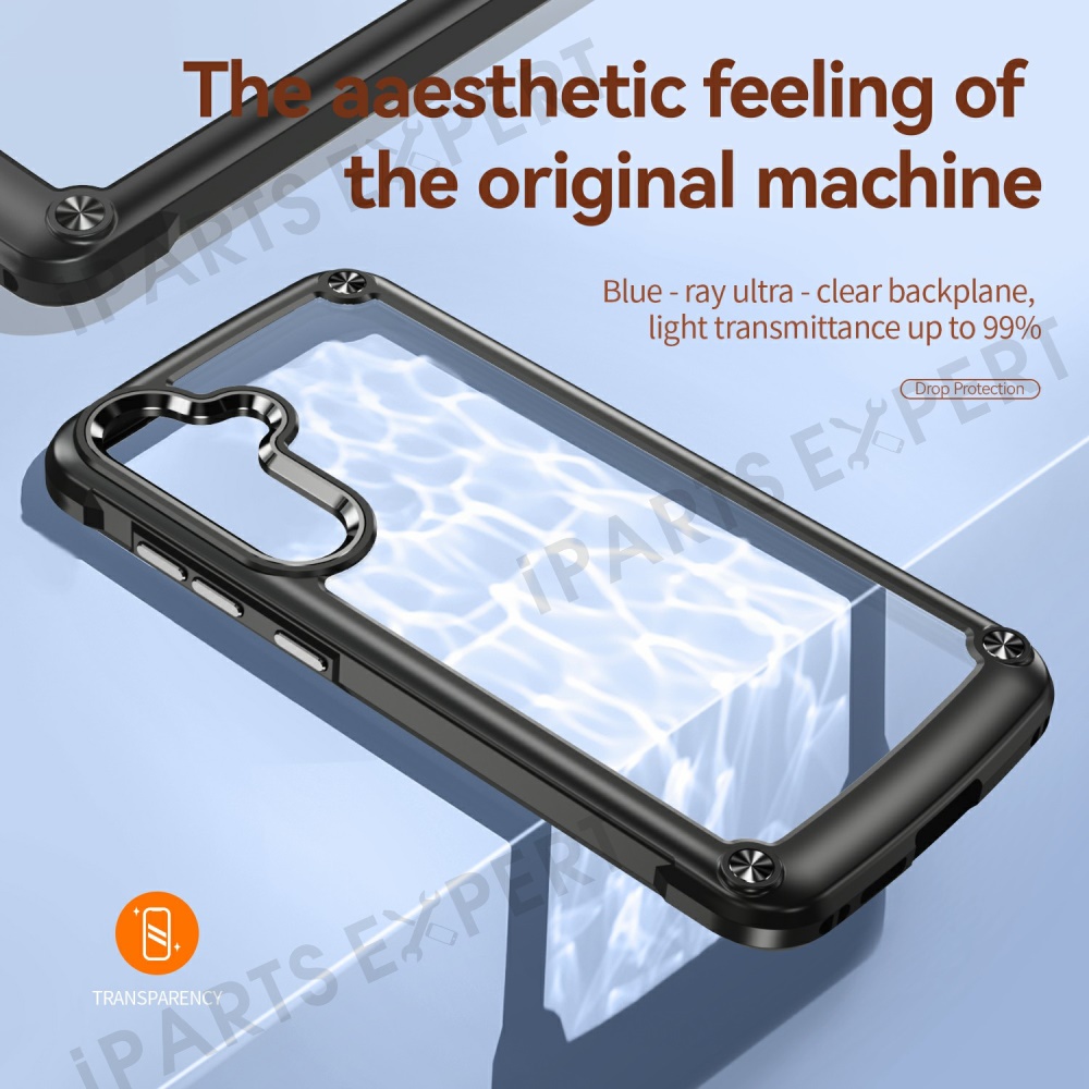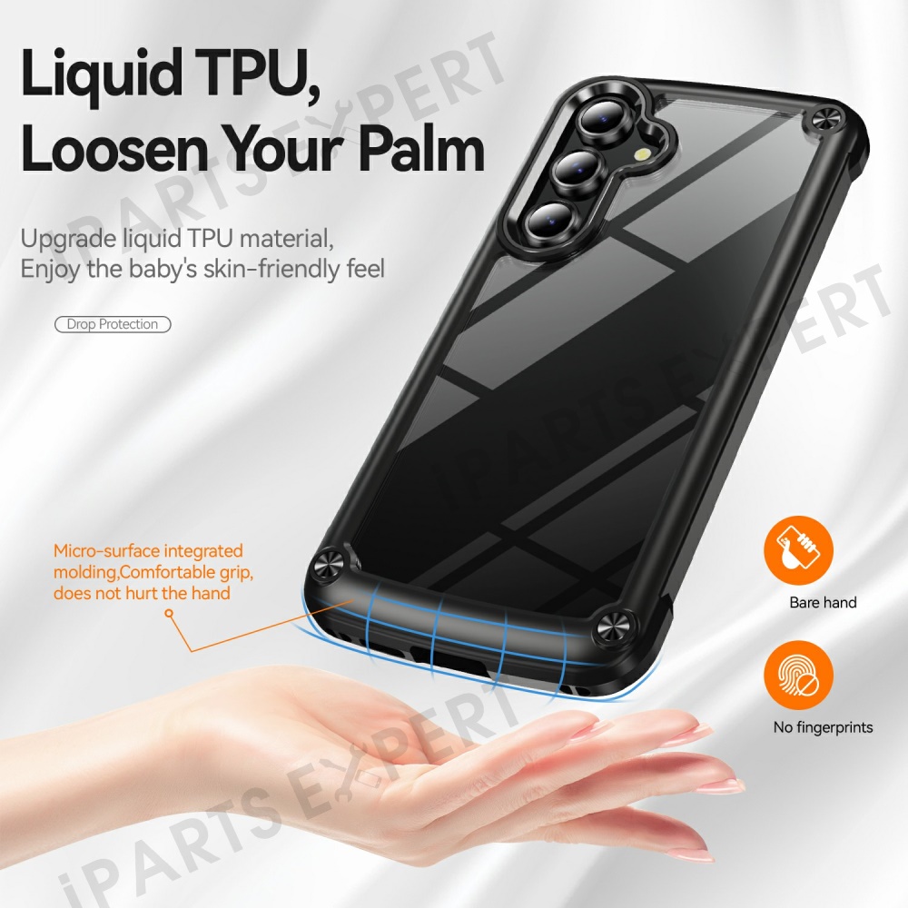For Samsung Galaxy S24 FE Case Anti-Drop Alloy Lens Frame PC + TPU Phone Cover - Black