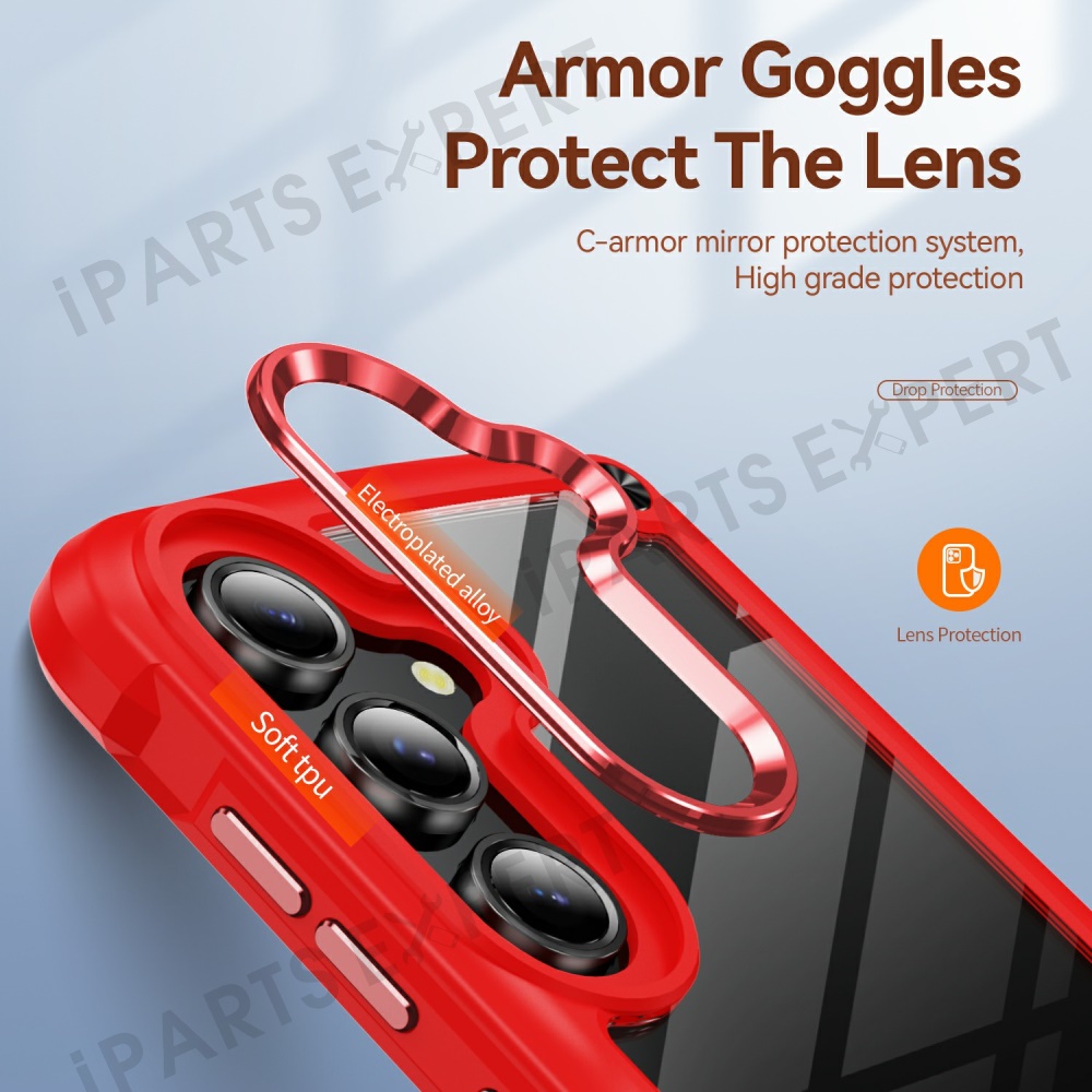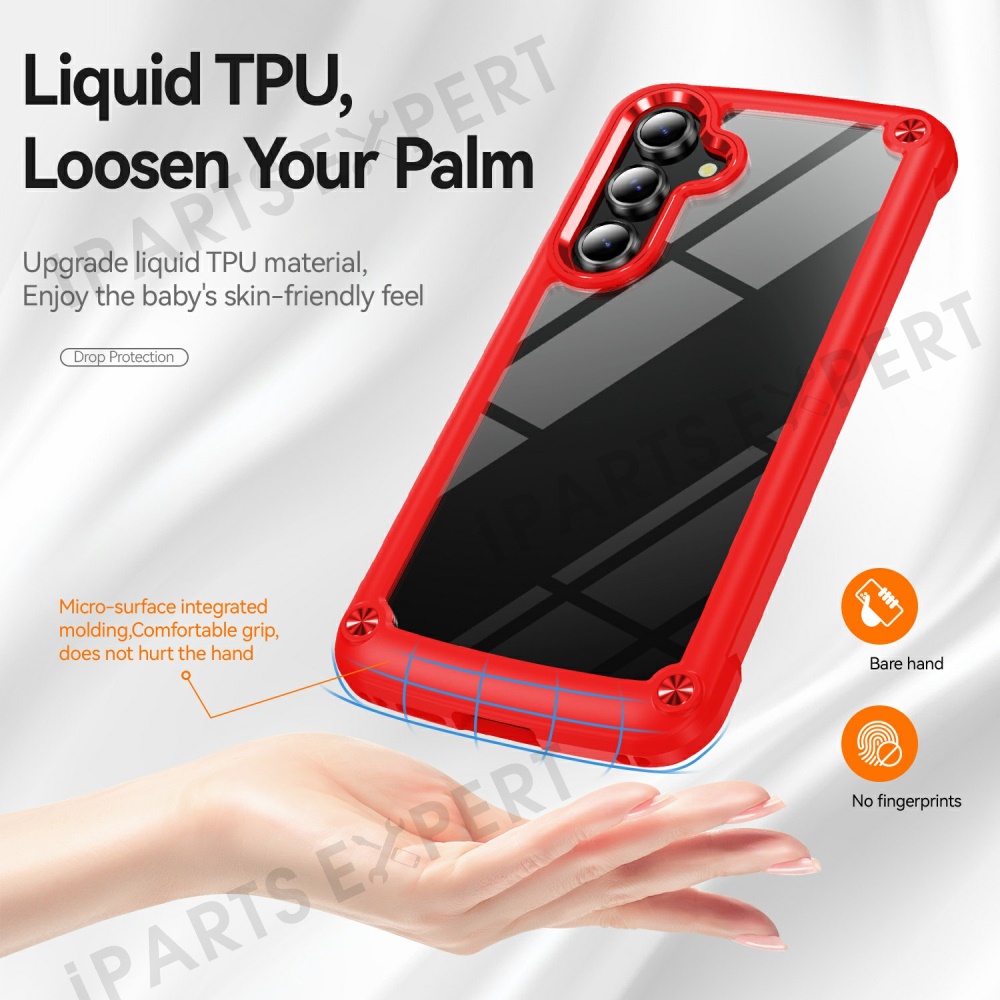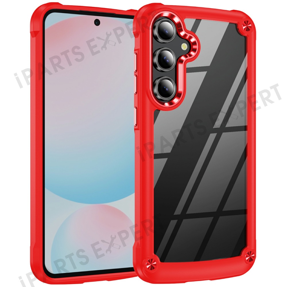 For Samsung Galaxy S24 FE Case Anti-Drop Alloy Lens Frame PC + TPU Phone Cover - Red