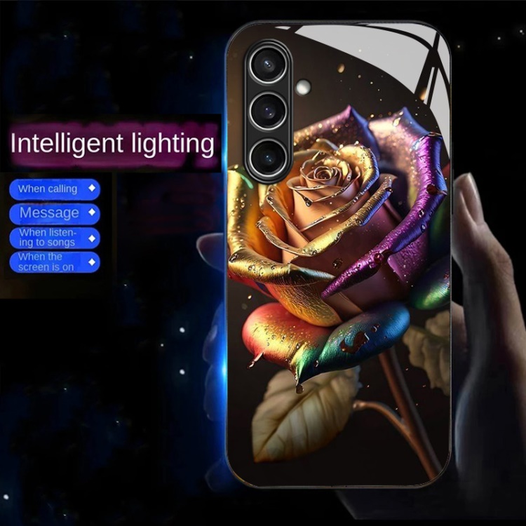 For Samsung Galaxy S24 FE Case Call Flash Series Pattern Printing Tempered Glass + TPU Combo Phone Case - Colorful Rose