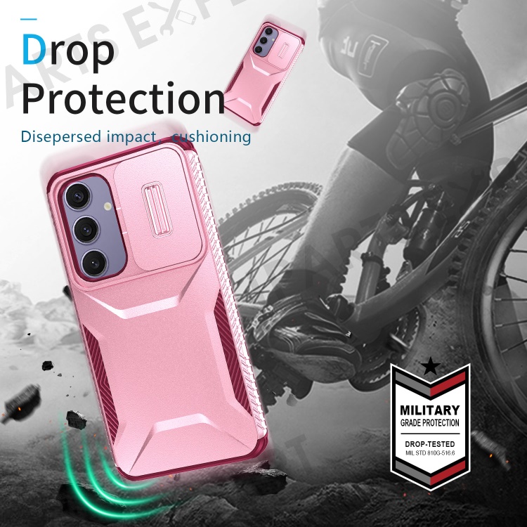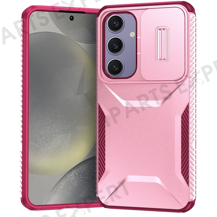 For Samsung Galaxy S24 FE Case Camshield TPU+PC Phone Cover Non-slip Side Edge - Pink+Wine Red