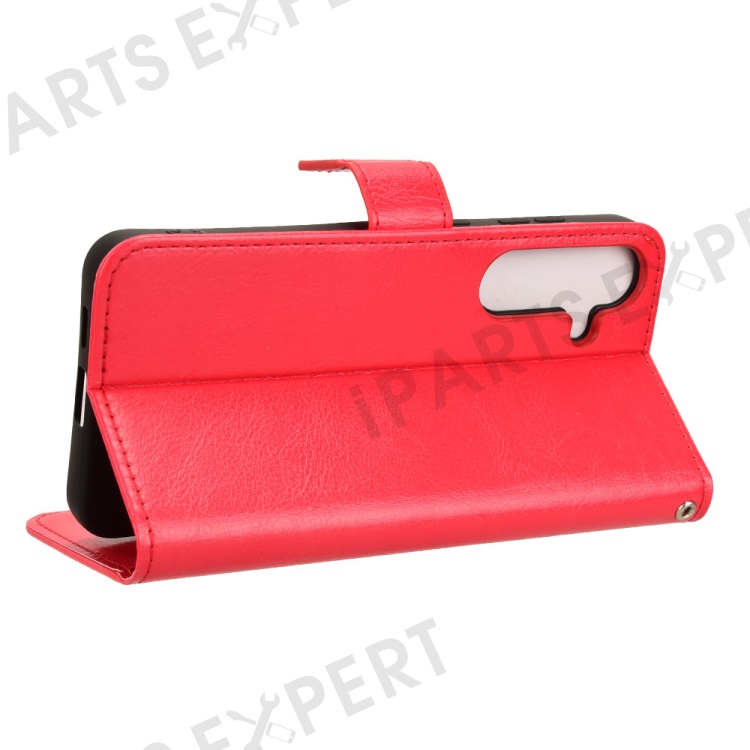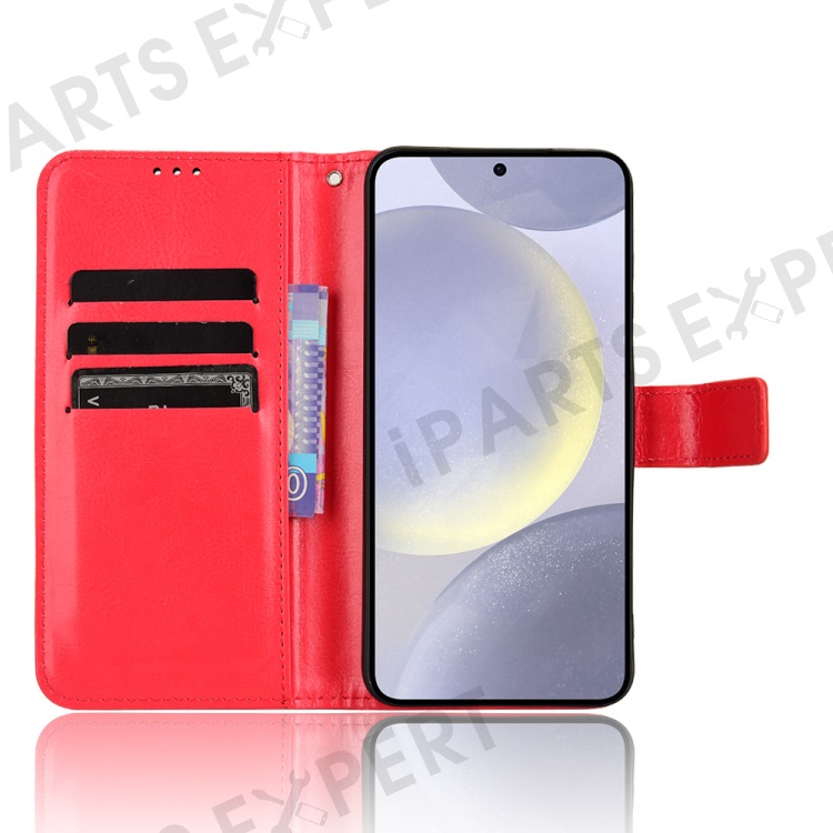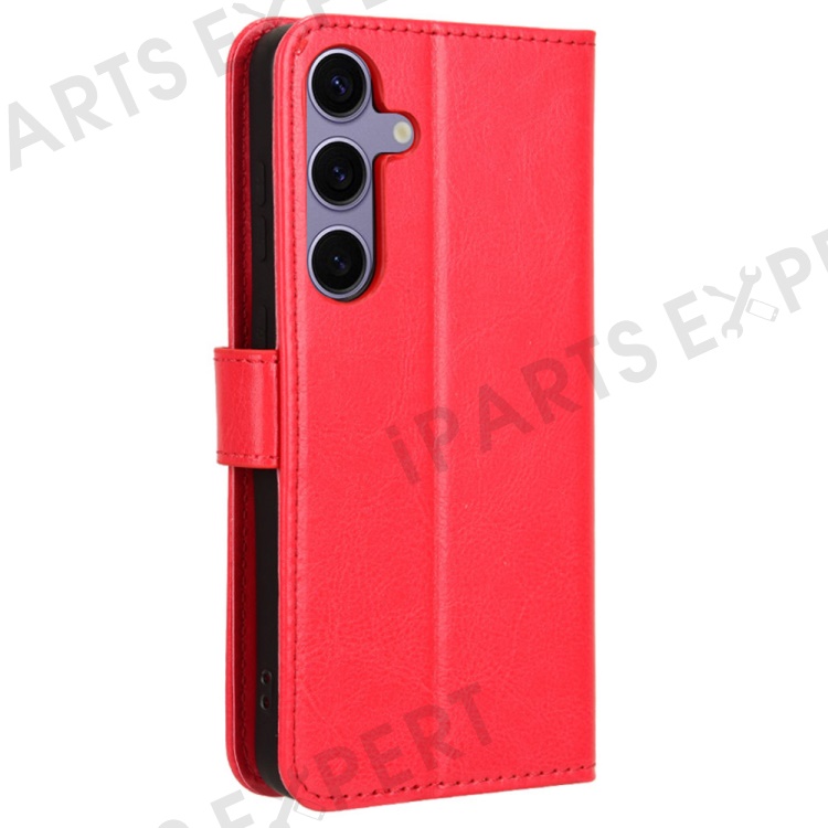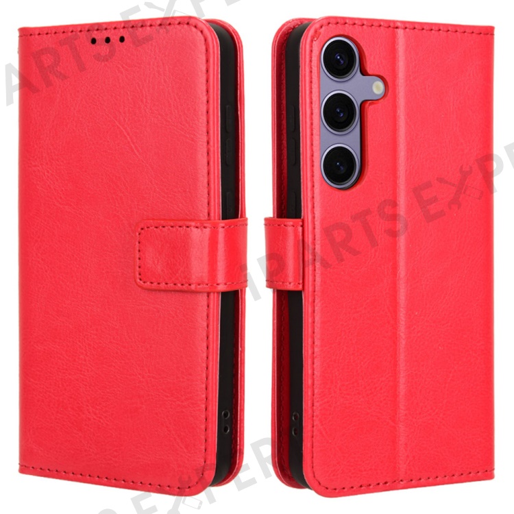 For Samsung Galaxy S24 FE Case Crazy Horse Texture PU Leather Phone Wallet Cover - Red