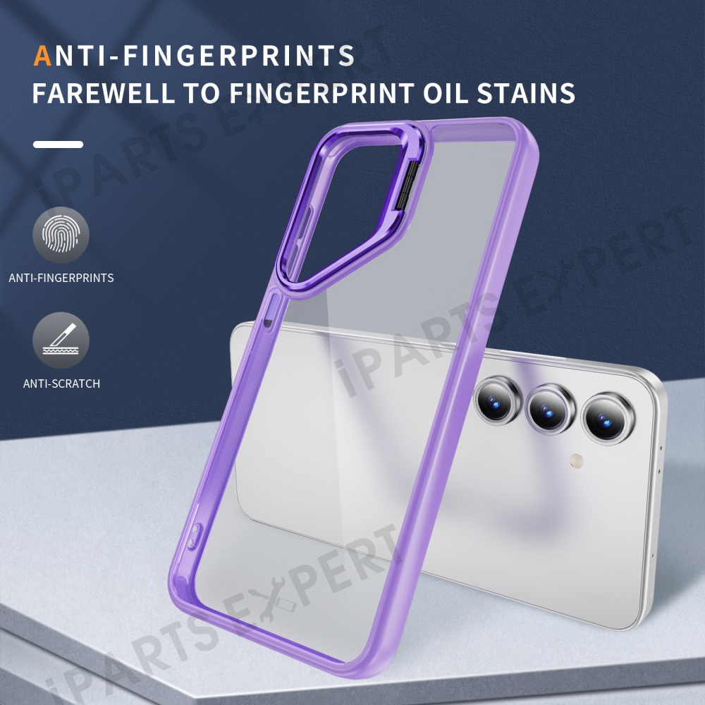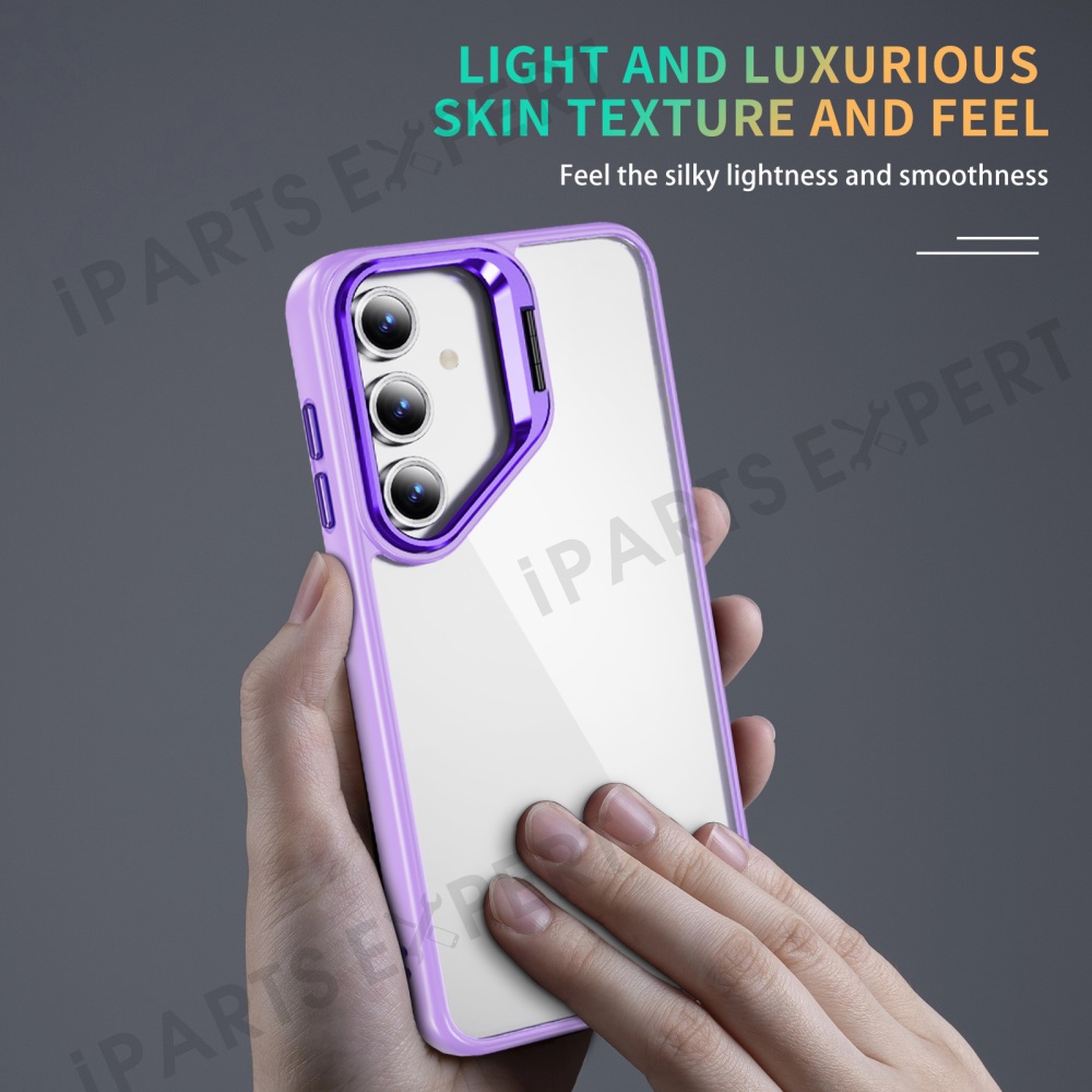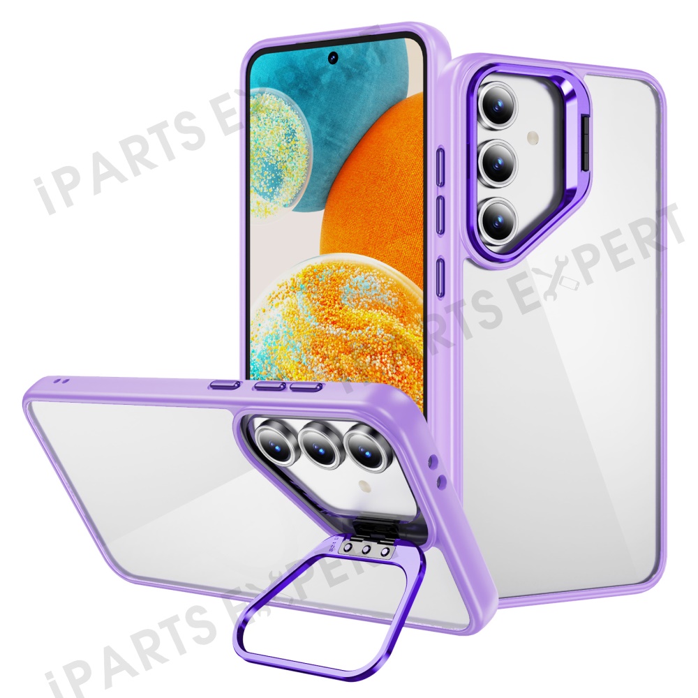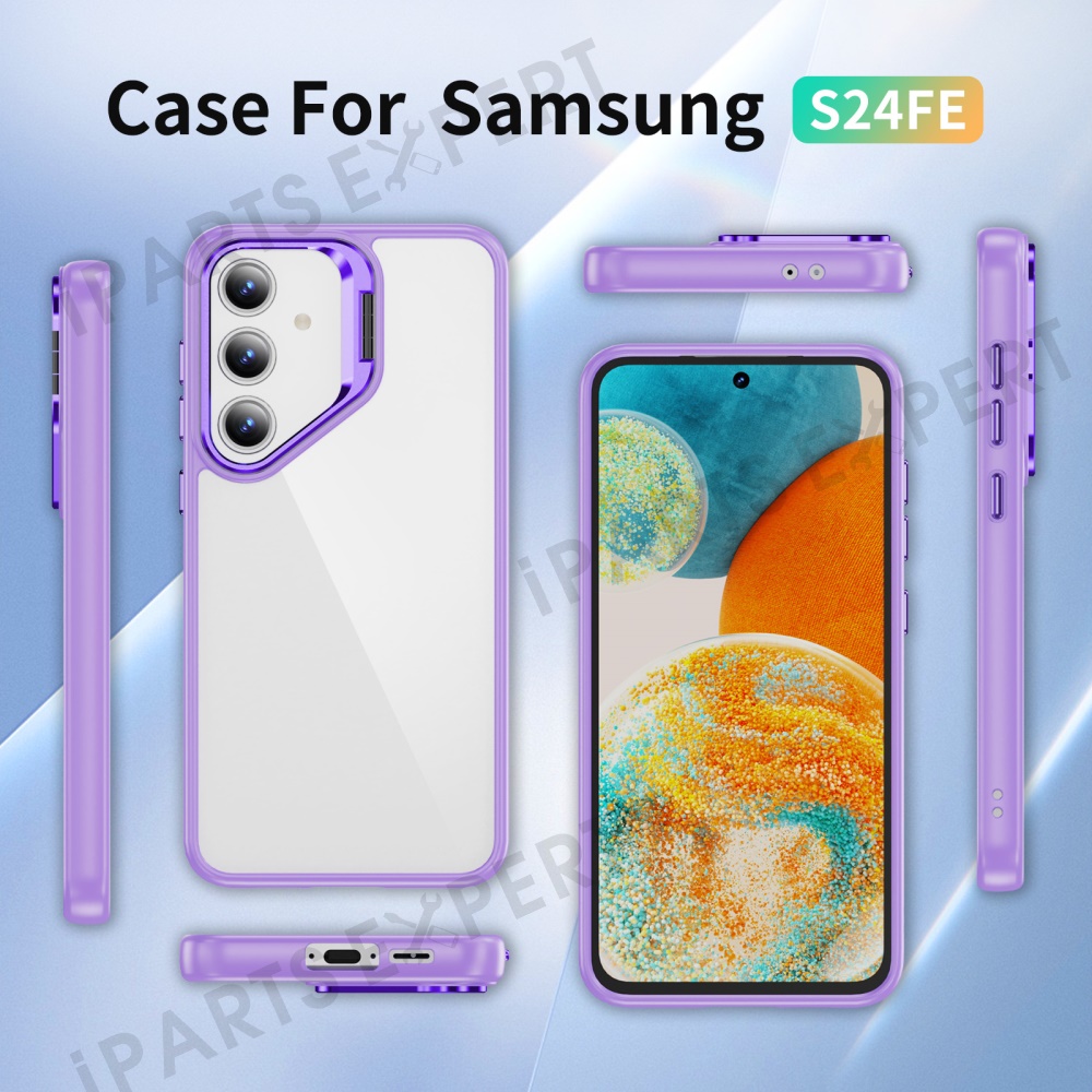 For Samsung Galaxy S24 FE Case Lens Frame Kickstand TPU + Acrylic Protective Phone Cover - Light Purple