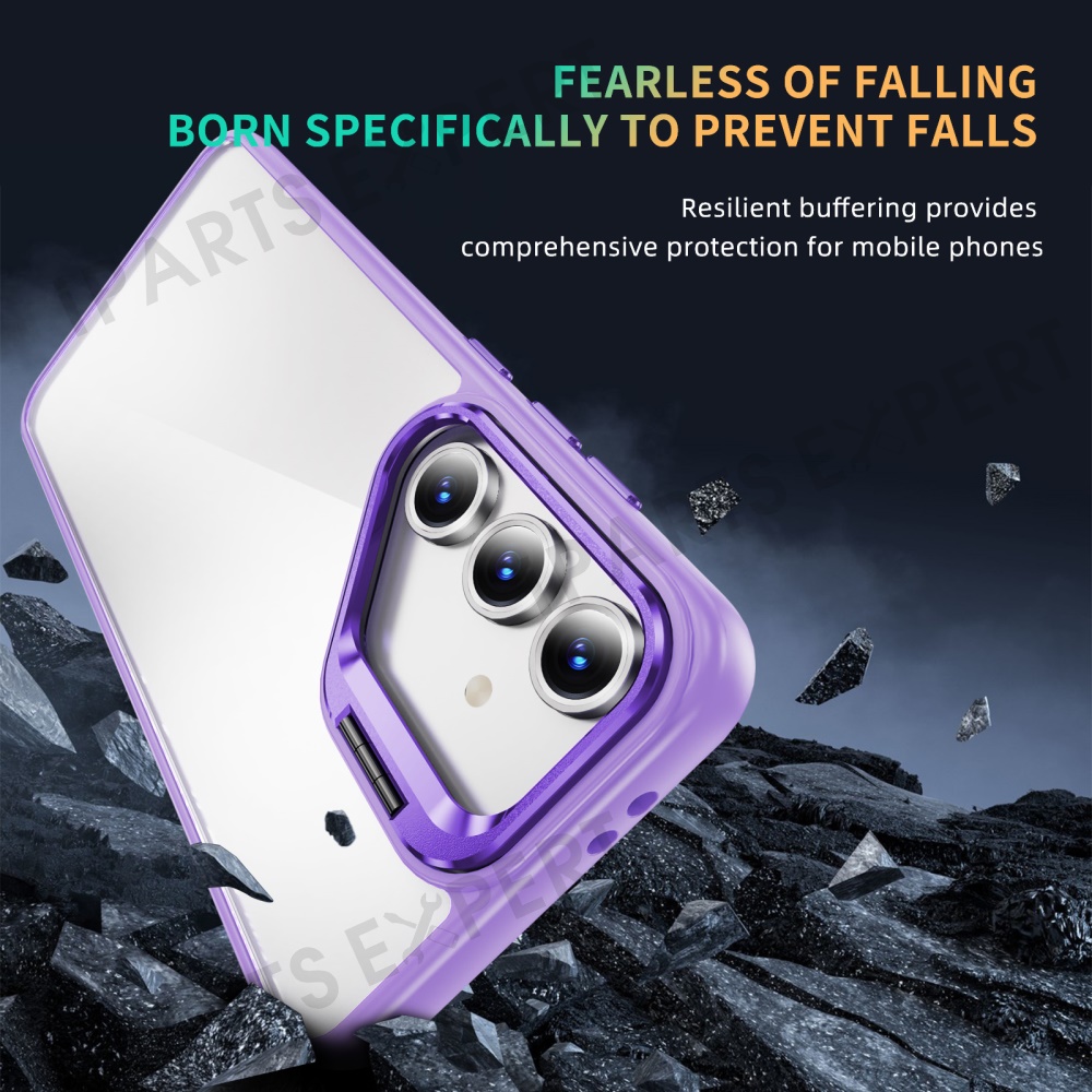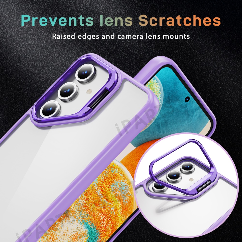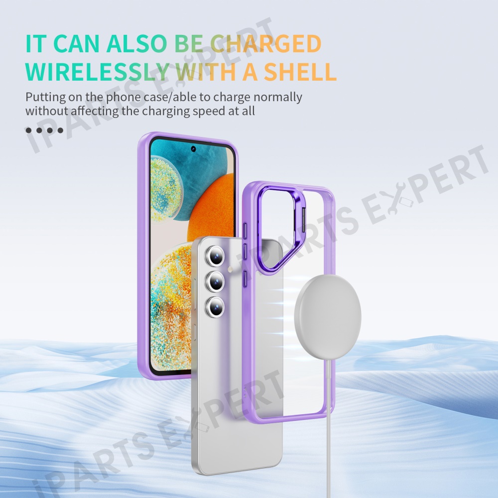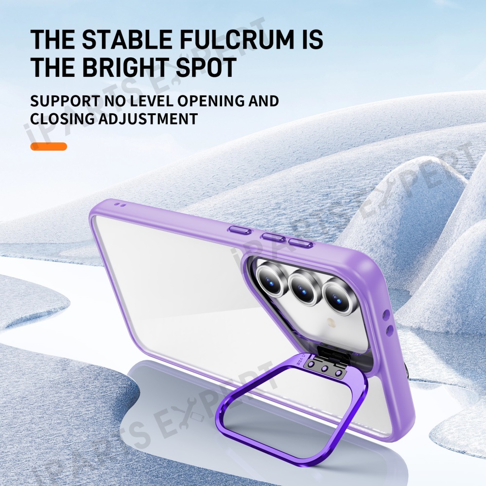 For Samsung Galaxy S24 FE Case Lens Frame Kickstand TPU + Acrylic Protective Phone Cover - Light Purple