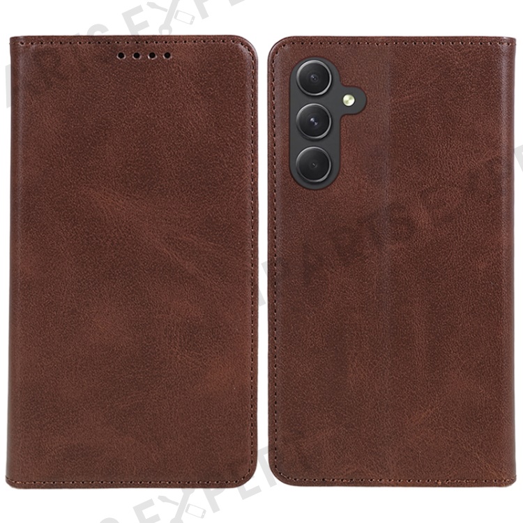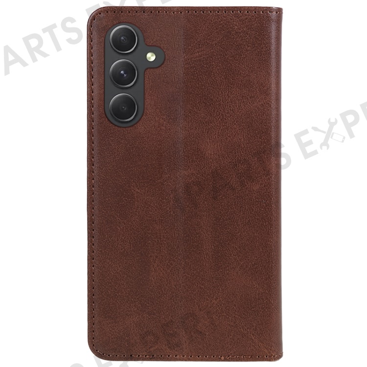 For Samsung Galaxy S24 FE Case Magnetic Auto Closing Leather Phone Cover - Brown
