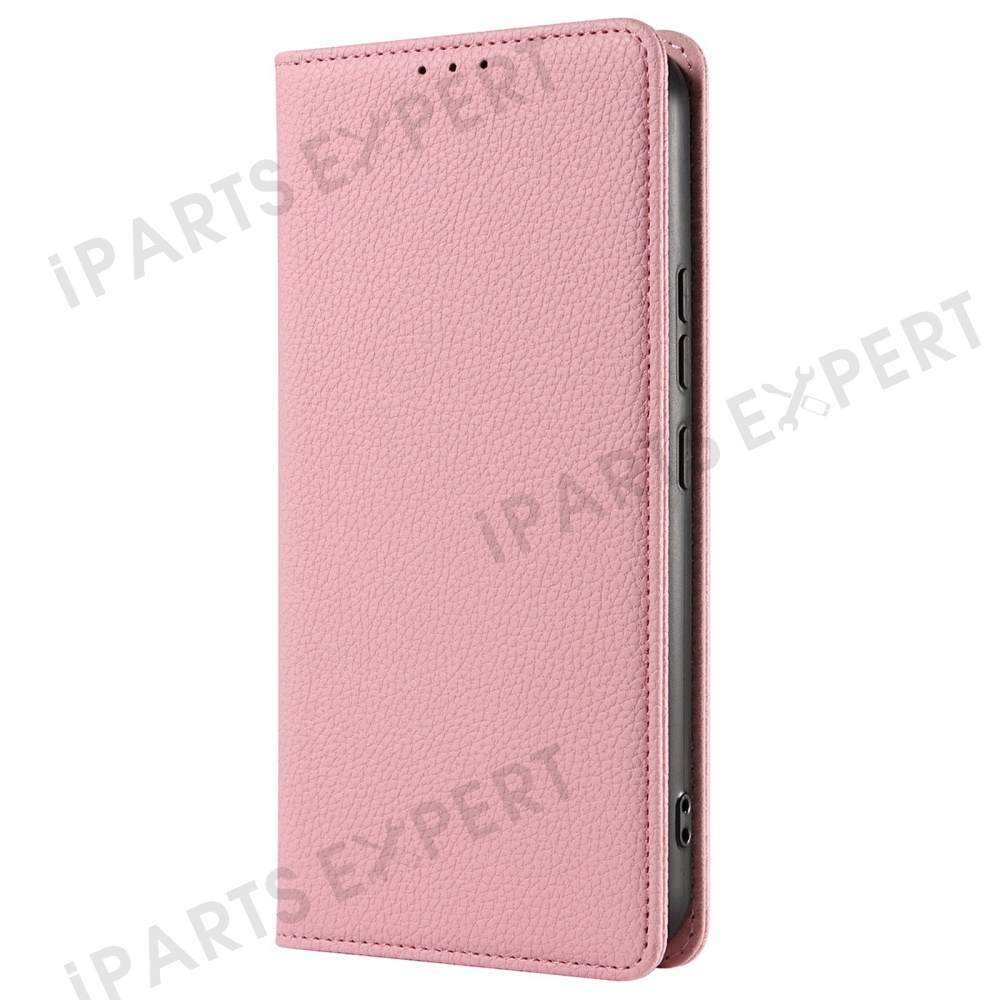 For Samsung Galaxy S24 FE Case Magnetic Litchi Texture Wallet Leather Phone Cover with Wrist Strap - Pink