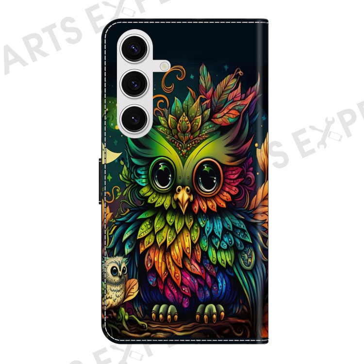For Samsung Galaxy S24 FE Case Pattern Printed Protective Cover TPU+PU Leather Flip Phone Case - Colorful Owl
