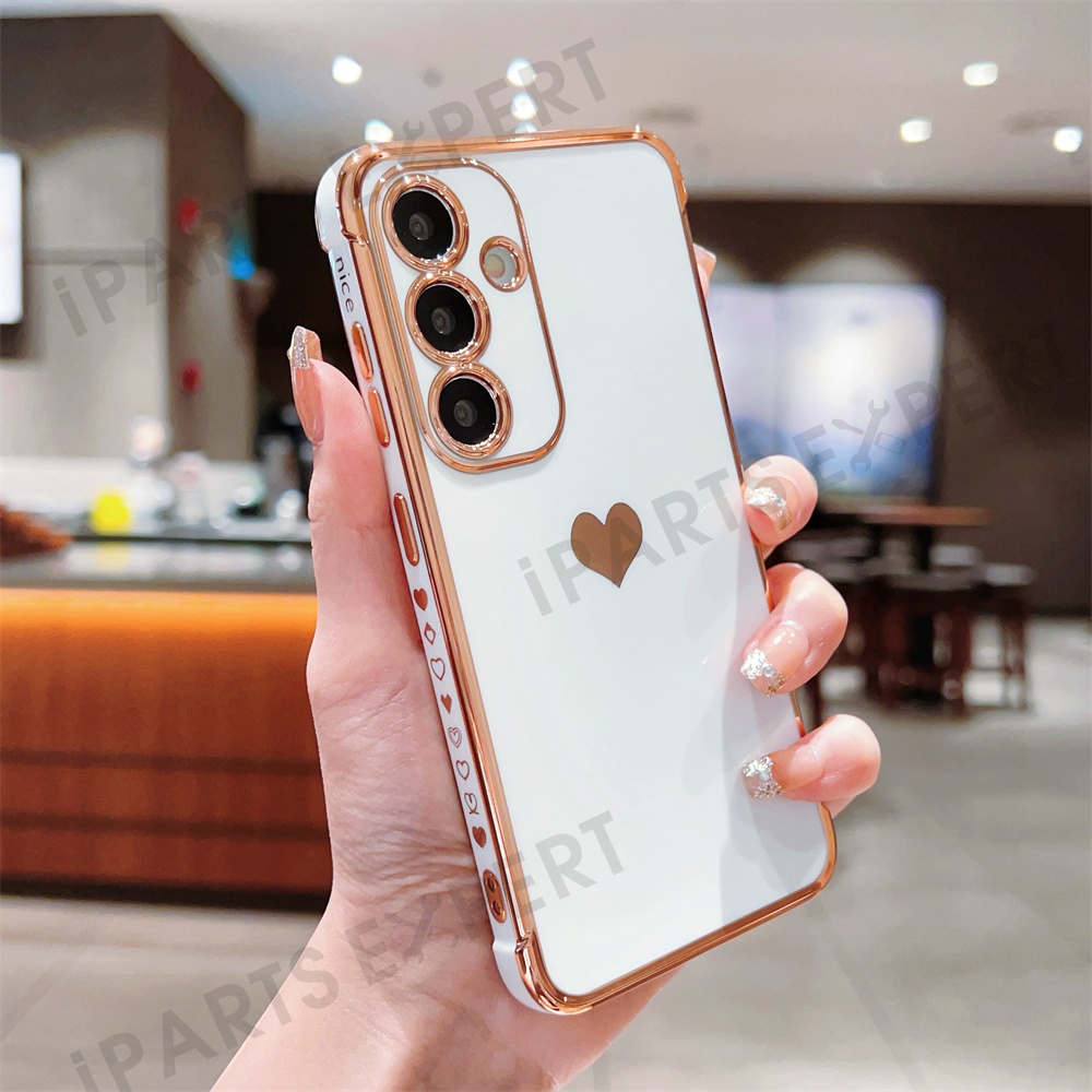 For Samsung Galaxy S24 FE Case TPU Phone Back Cover Electroplating Heart Pattern - Ivory White