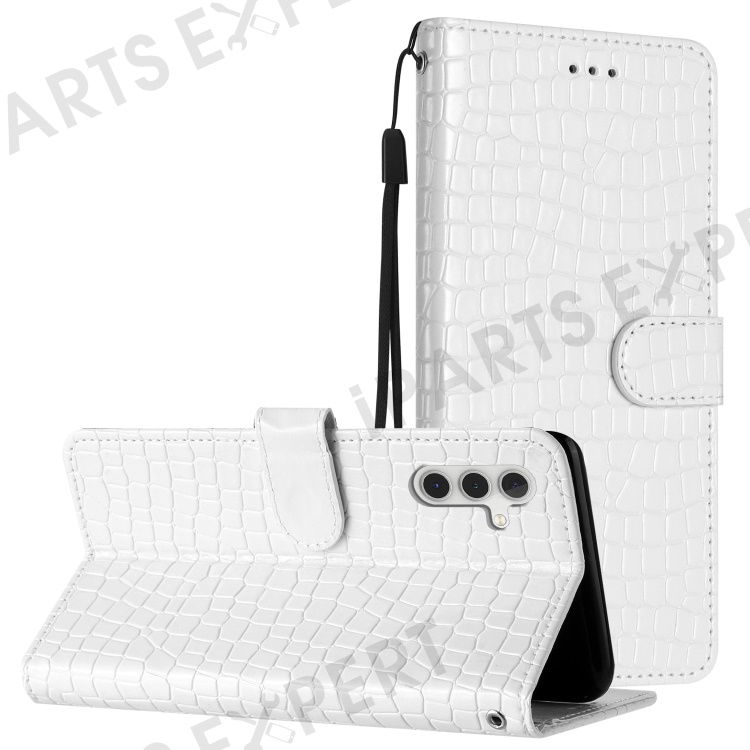 For Samsung Galaxy S24 FE Case Wallet PU Leather Phone Cover Crocodile Texture - White