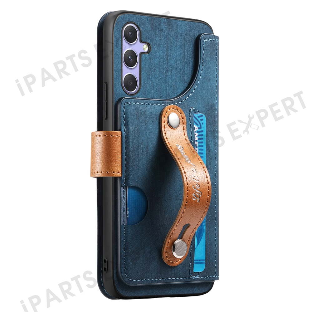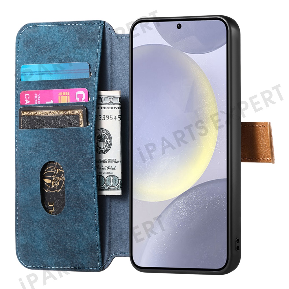 For Samsung Galaxy S24 FE Case Wallet Retro Leather Phone Cover with Wristband Kickstand - Blue