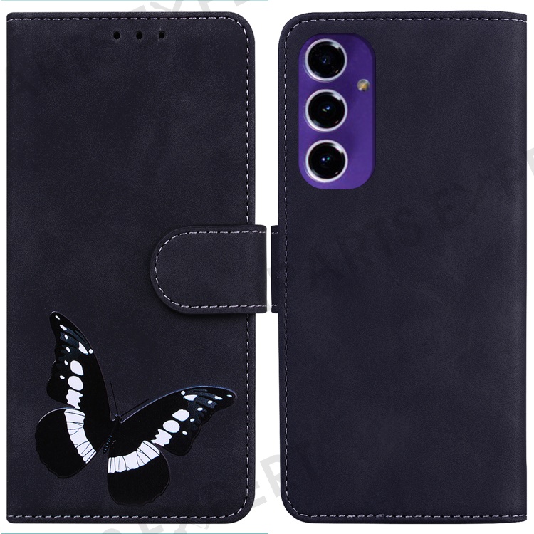 For Samsung Galaxy S24 FE Phone Case Printed Butterfly PU Leather Stand Phone Cover Wallet - Black
