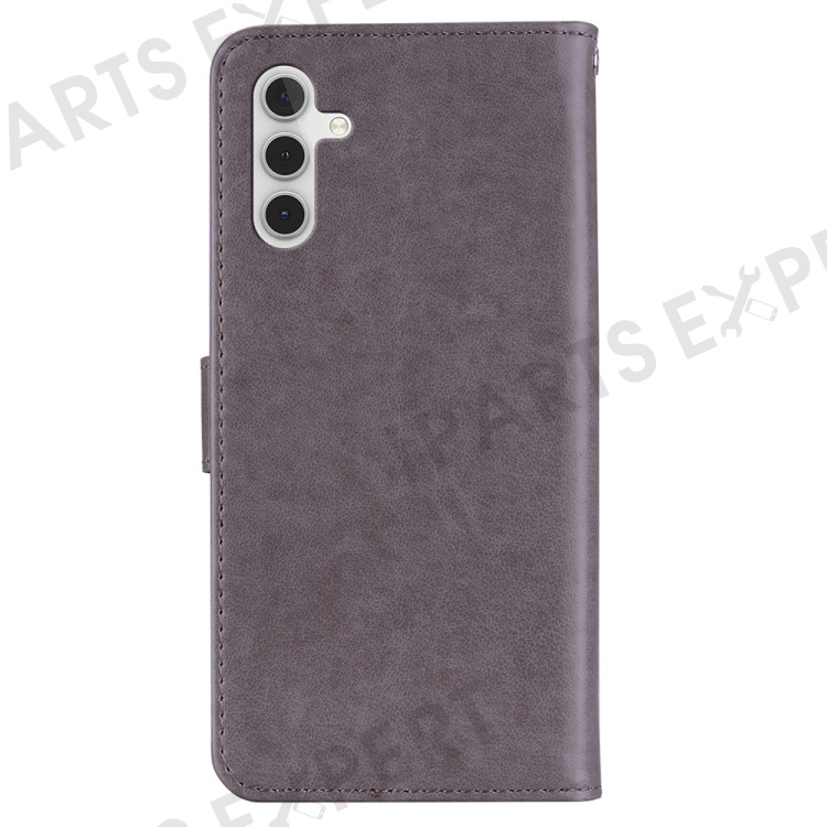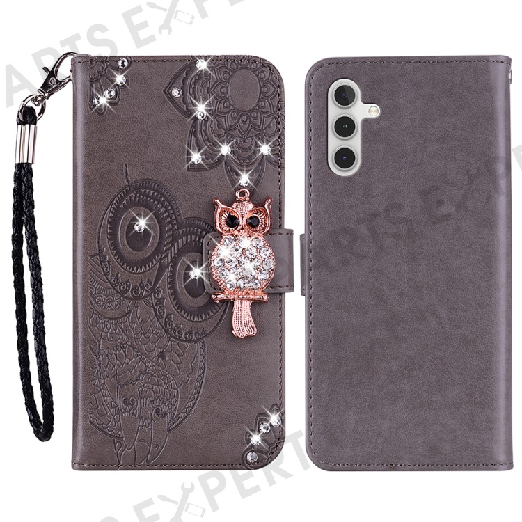 For Samsung Galaxy S24 FE Wallet Case Owl Flower Imprinted Rhinestone Leather Cover - Grey
