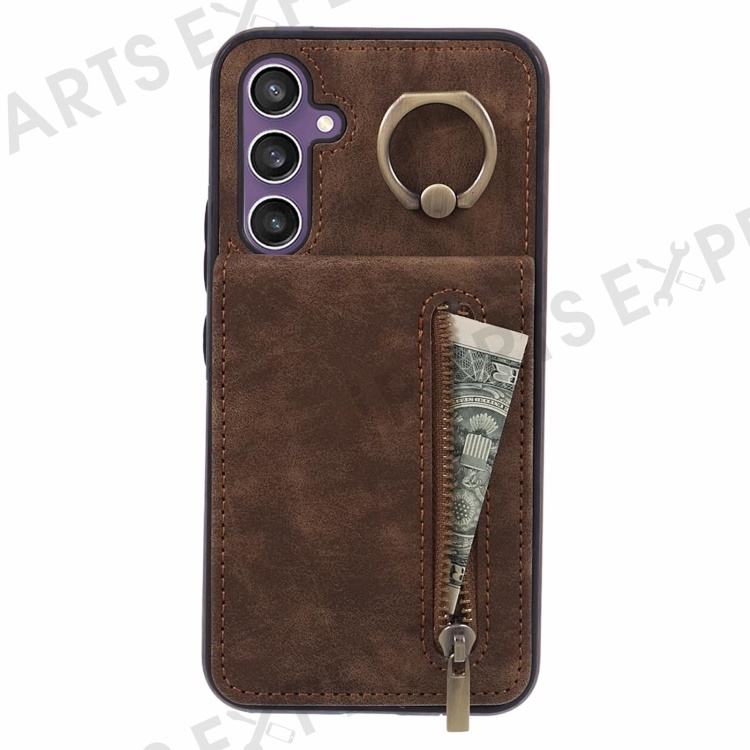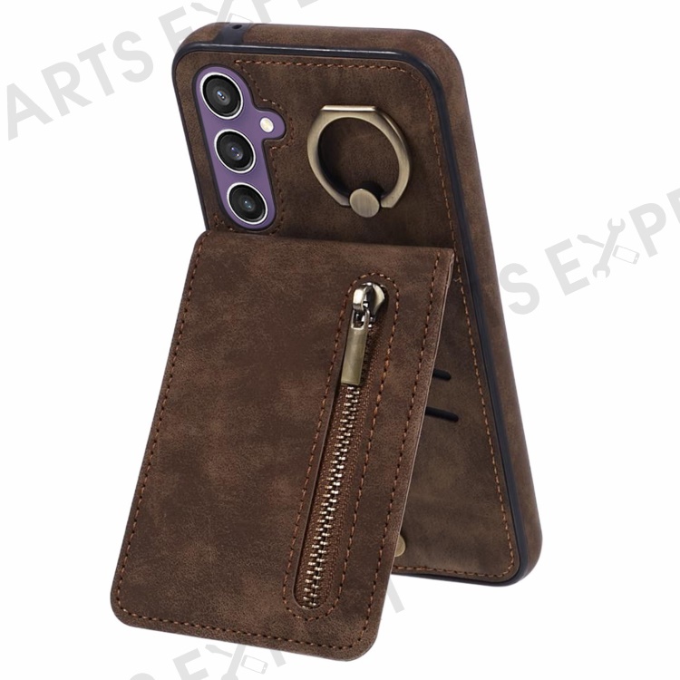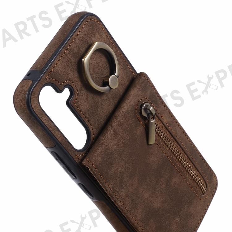 For Samsung Galaxy S24+ Magnetic Case Retro PU+TPU Kickstand Back Cover - Brown