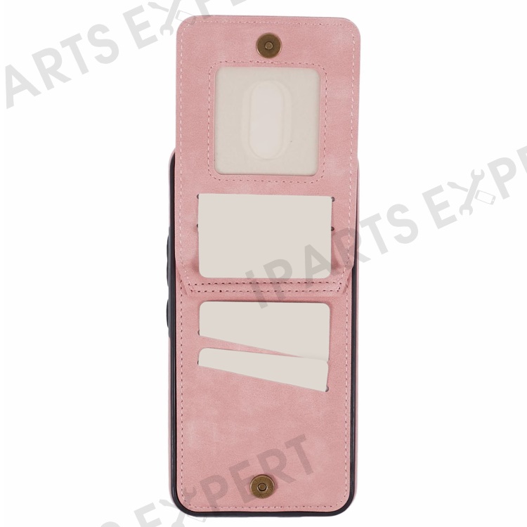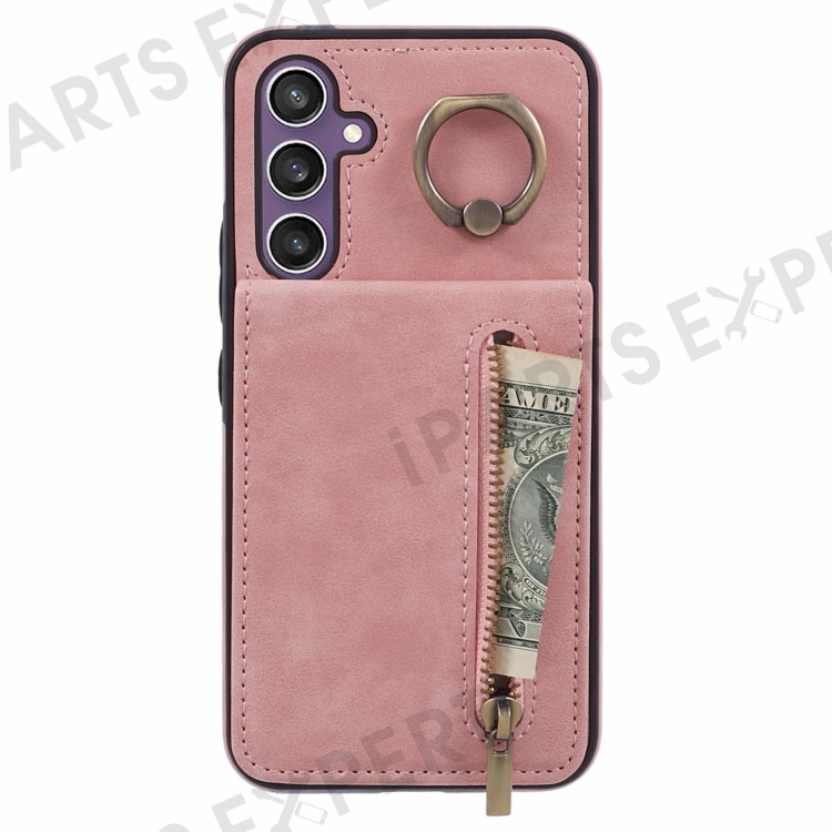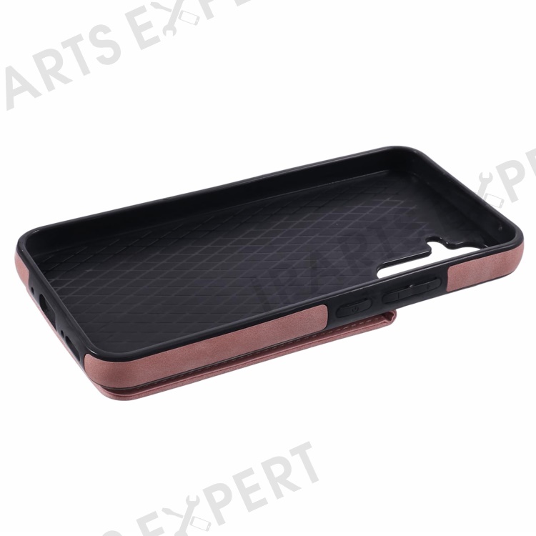 For Samsung Galaxy S24+ Magnetic Case Retro PU+TPU Kickstand Back Cover - Pink