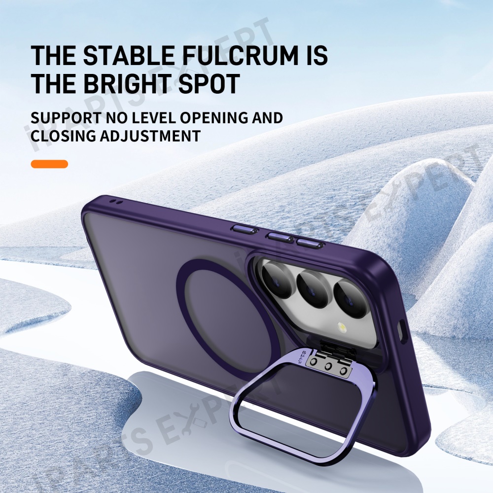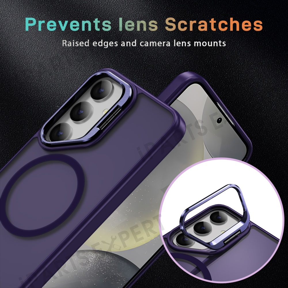 For Samsung Galaxy S24+ Magnetic Case with Lens Kickstand Skin-Touch PC + TPU Phone Cover - Dark Purple