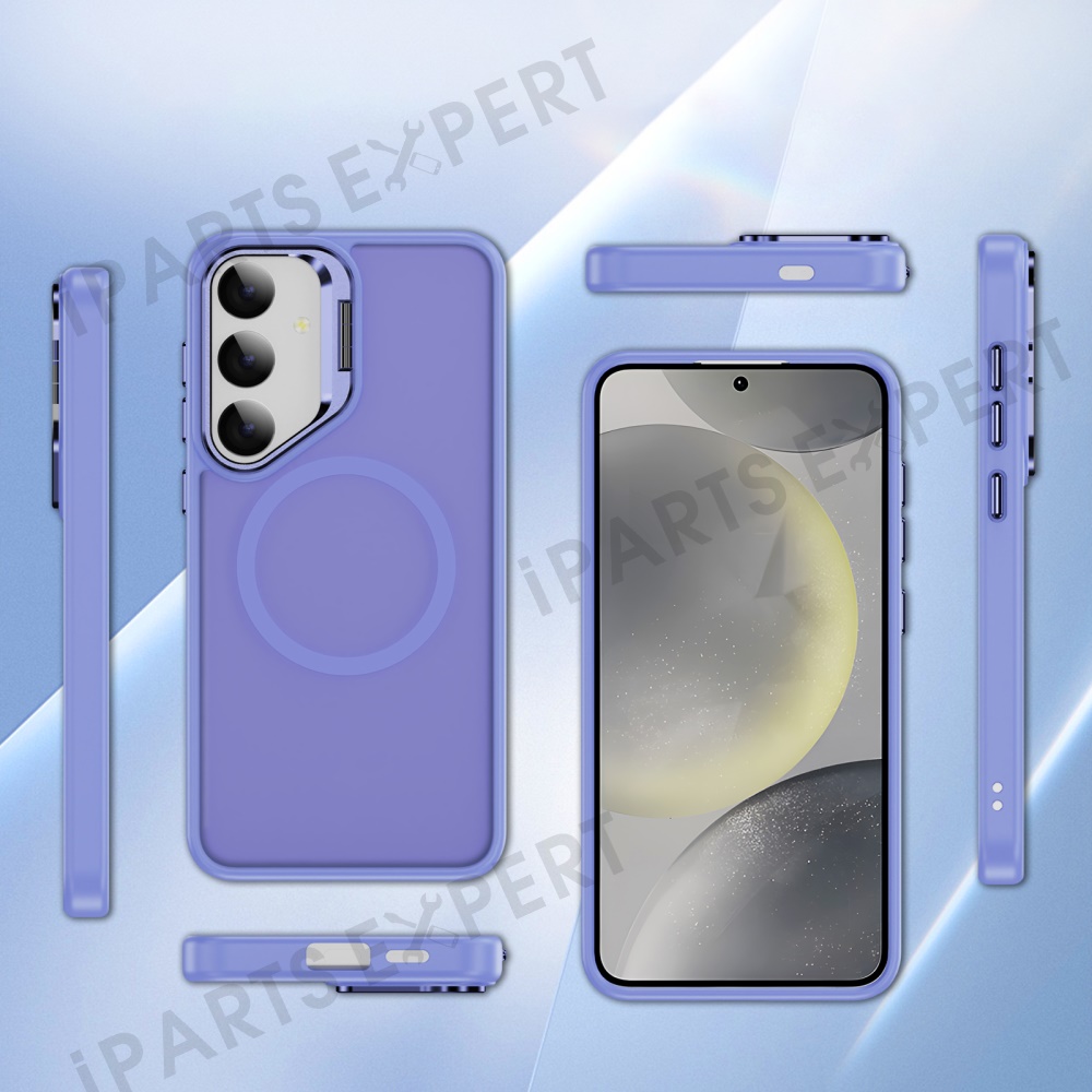 For Samsung Galaxy S24 Magnetic Case with Lens Kickstand Skin-Touch PC + TPU Phone Cover - Light Purple