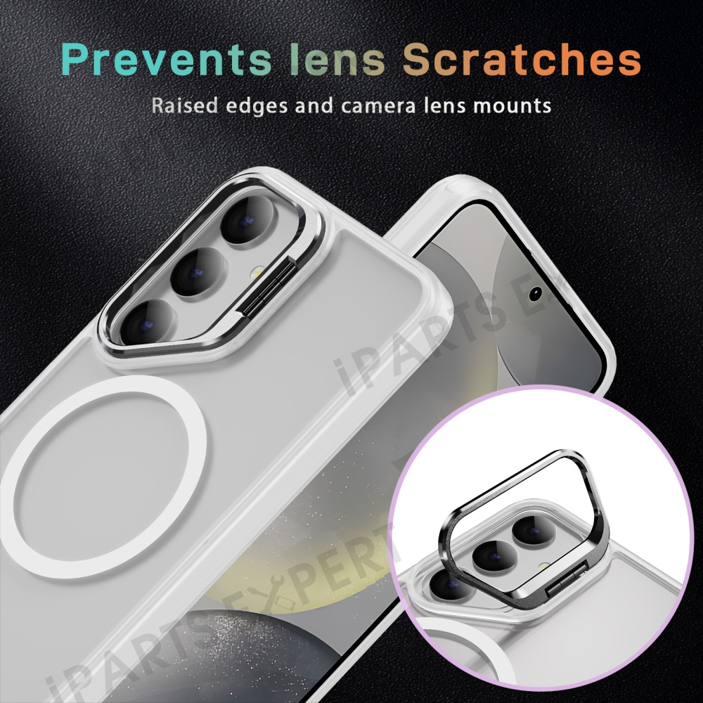For Samsung Galaxy S24+ Magnetic Case with Lens Kickstand Skin-Touch PC + TPU Phone Cover - Transparent