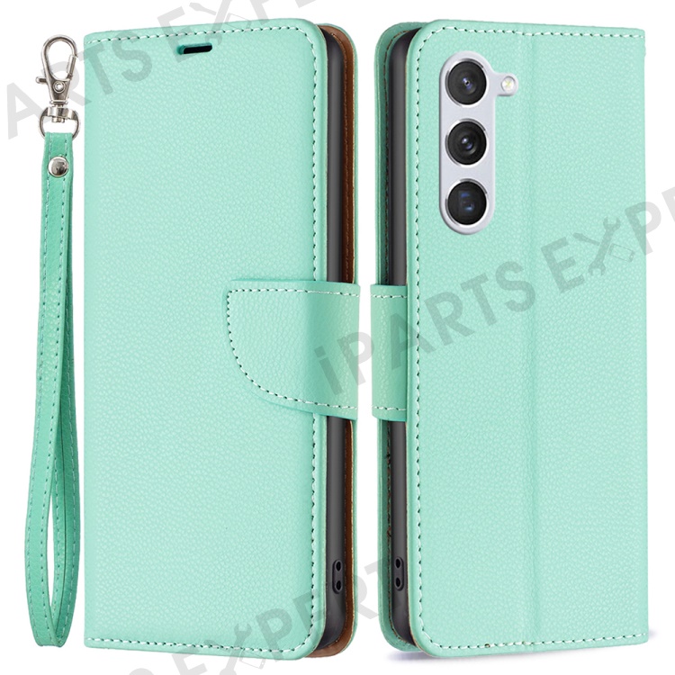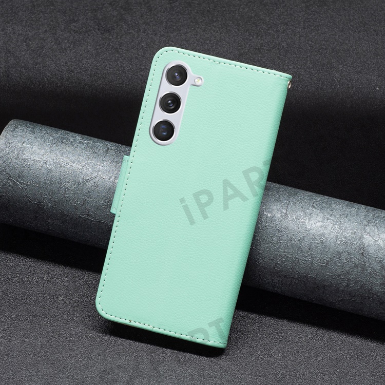 For Samsung Galaxy S25 / S24 Wallet Case with Wrist Strap Litchi Texture Leather Phone Stand Cover - Green