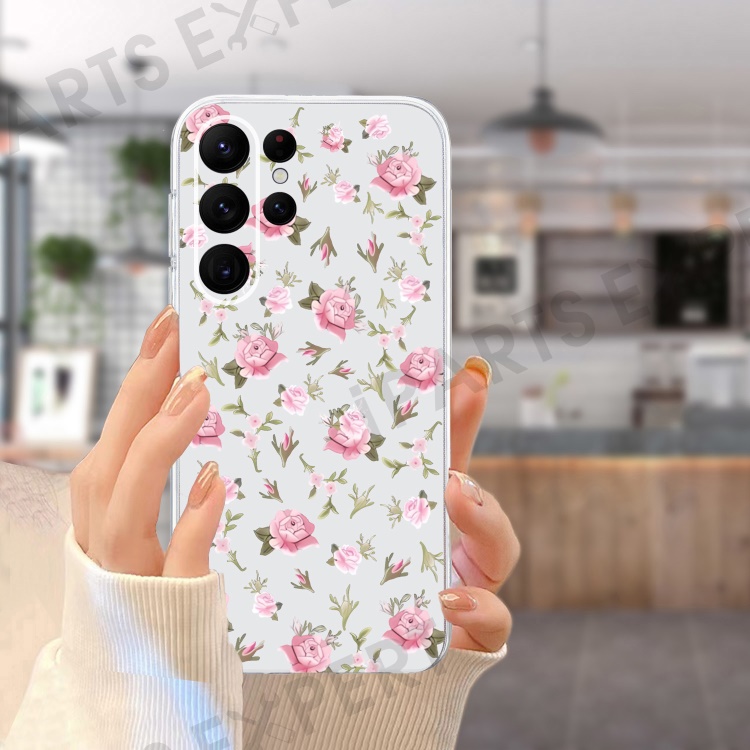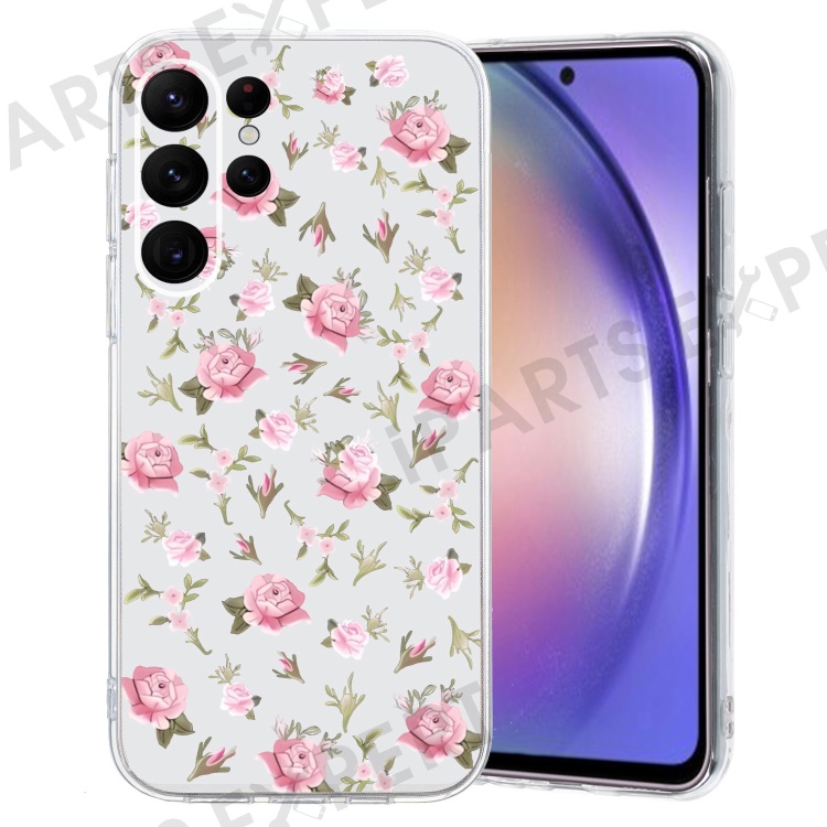 For Samsung Galaxy S24 Ultra Case Anti-Drop TPU Phone Cover Pattern Printing - Pink Flower