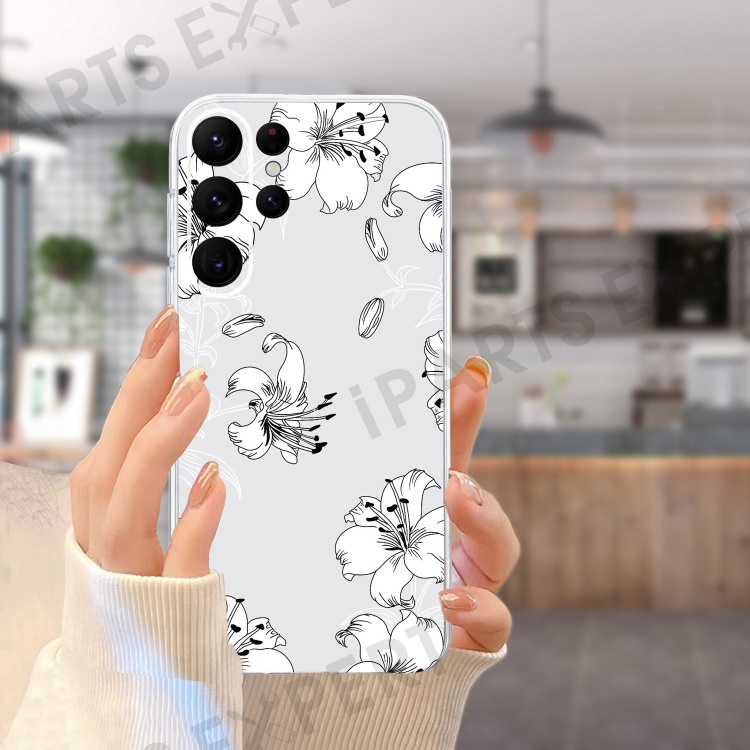 For Samsung Galaxy S24 Ultra Case Anti-Drop TPU Phone Cover Pattern Printing - White Flower