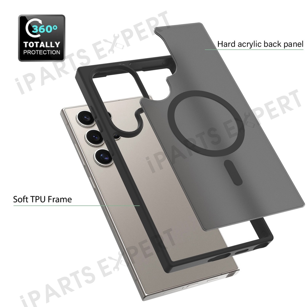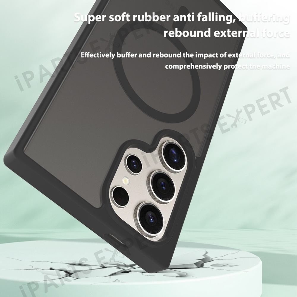 For Samsung Galaxy S24 Ultra Magnetic Case TPU Frame Acrylic Back Phone Cover Skin Touch - Blue