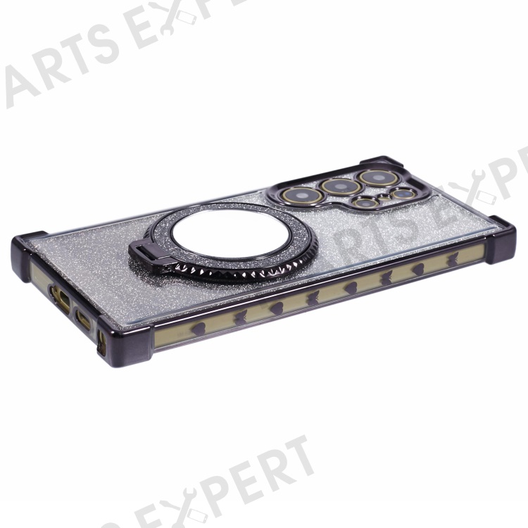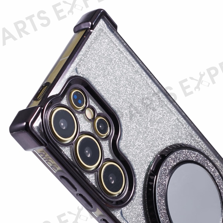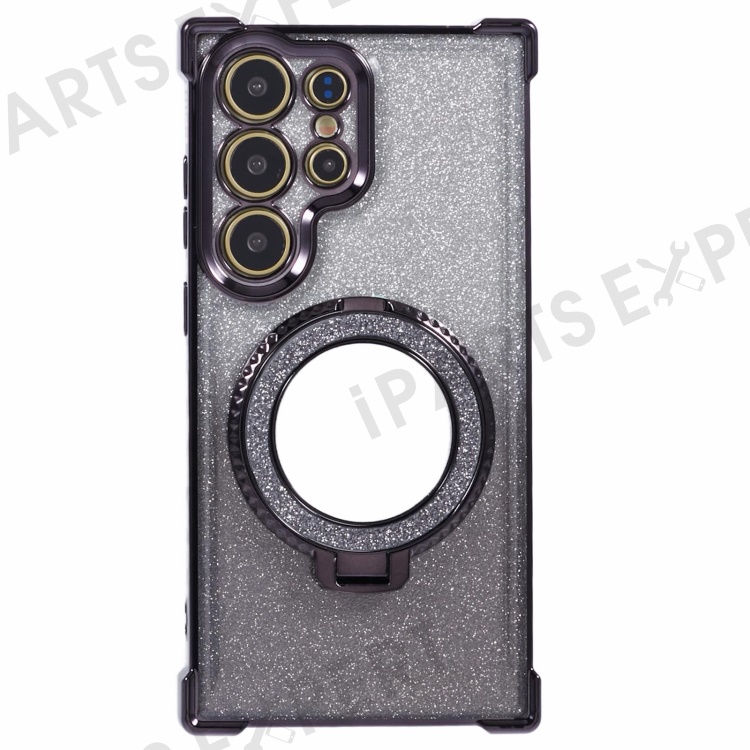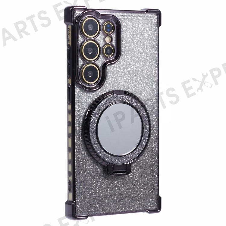 For Samsung Galaxy S24 Ultra Case Glitter TPU Phone Cover with Kickstand Mirror - Black