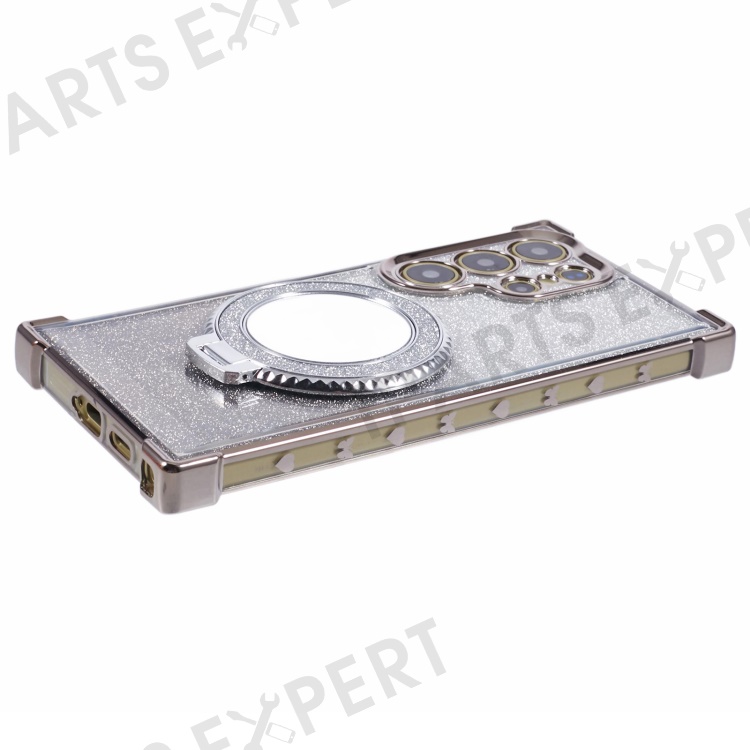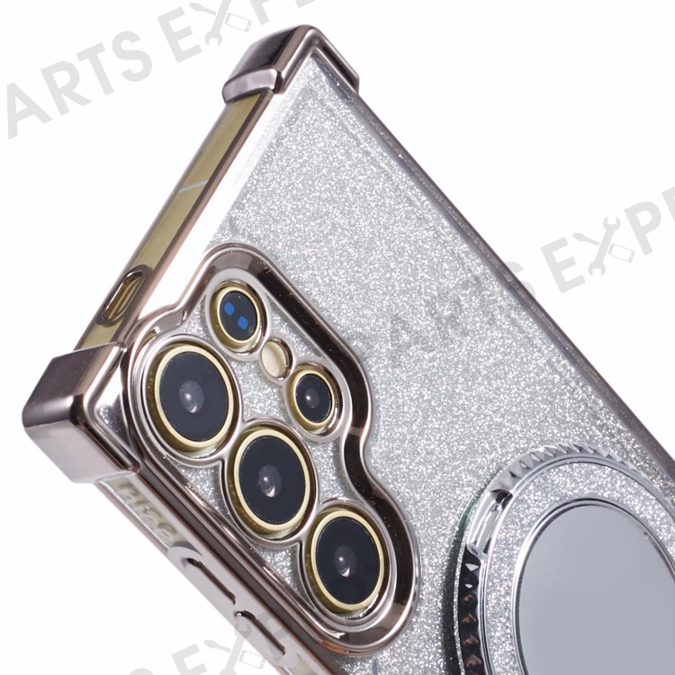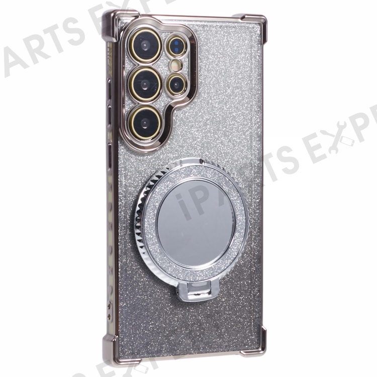 For Samsung Galaxy S24 Ultra Case Glitter TPU Phone Cover with Kickstand Mirror - Grey