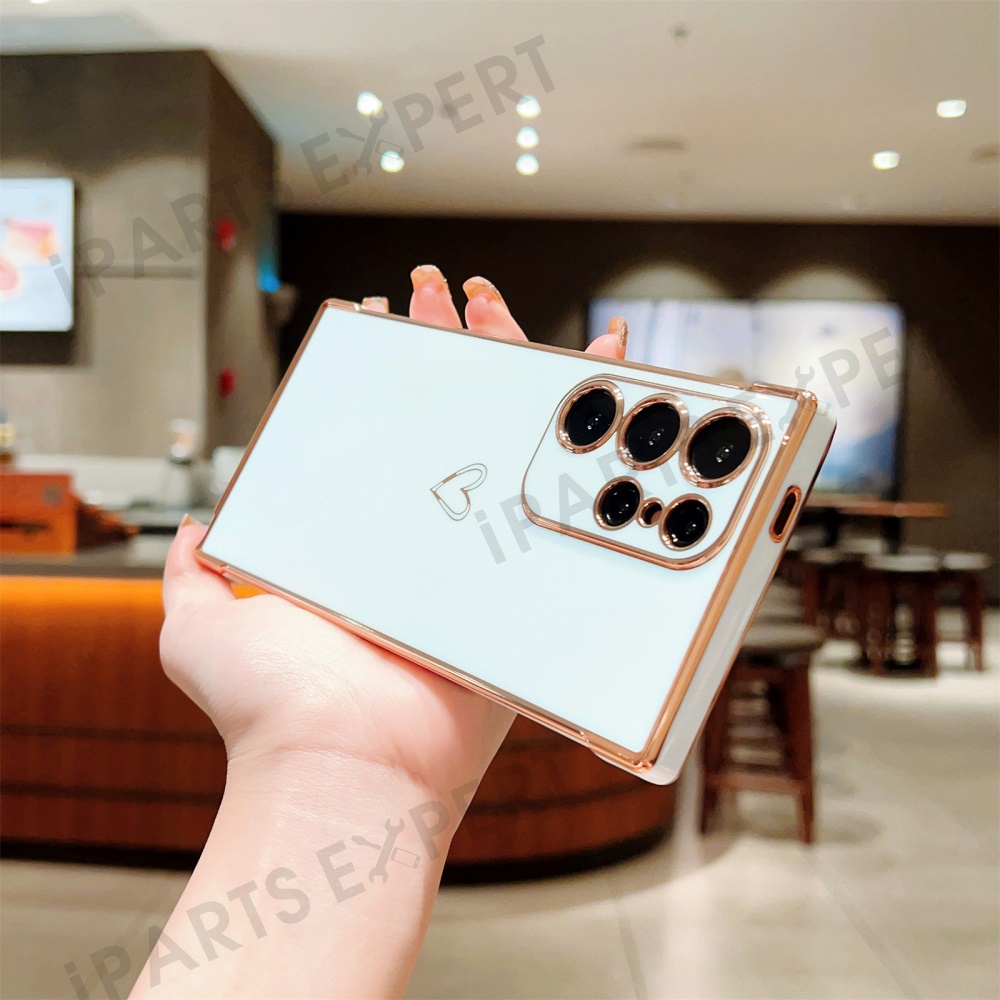 For Samsung Galaxy S24 Ultra Case Love Heart Pattern TPU Phone Cover Electroplating Edge - Ivory White