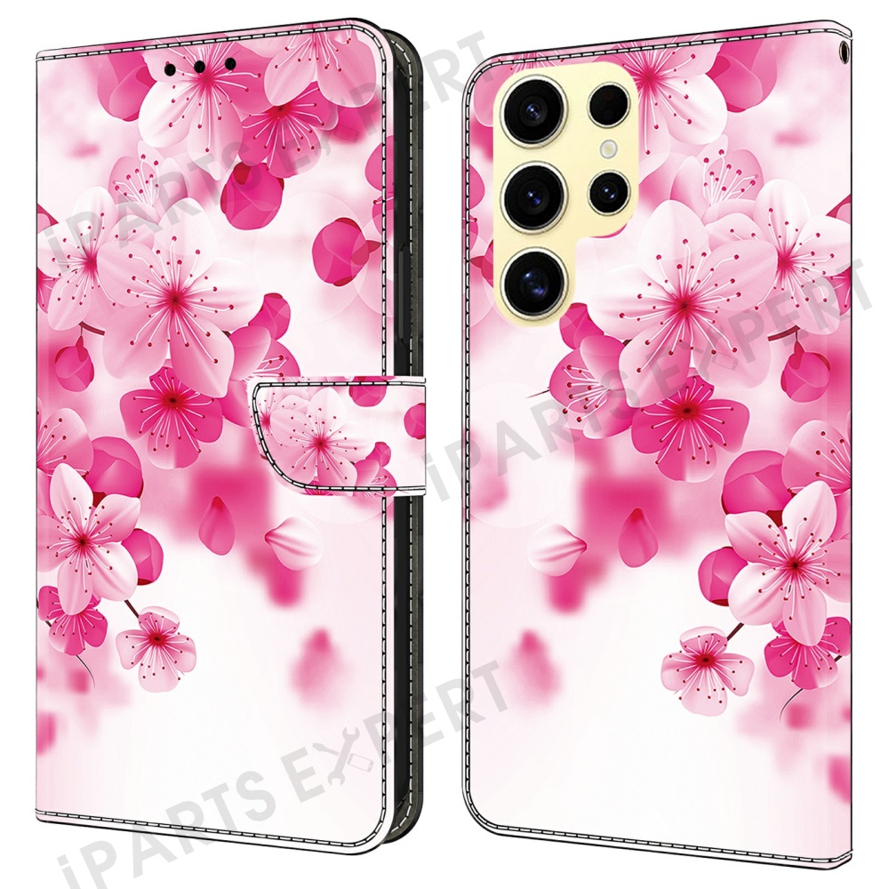 For Samsung Galaxy S24 Ultra Case Pattern Printing Anti-Drop Leather Flip Wallet Phone Cover - Red Flowers
