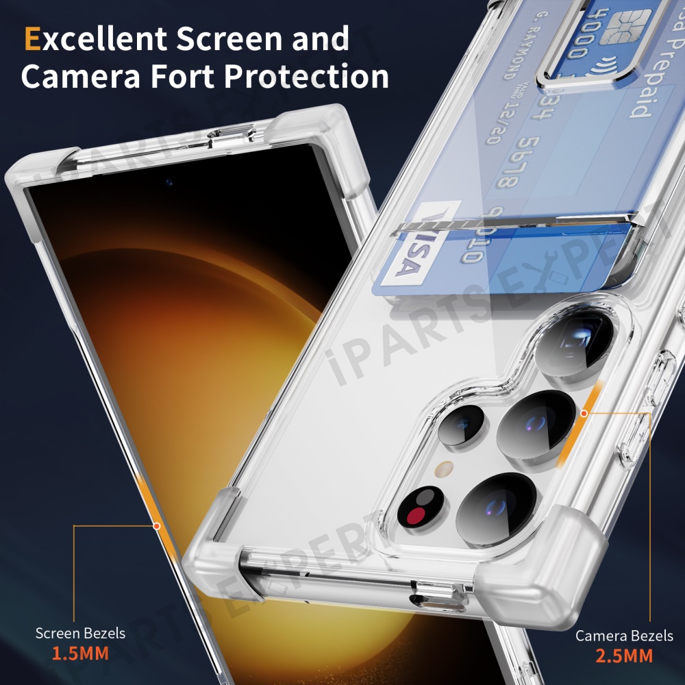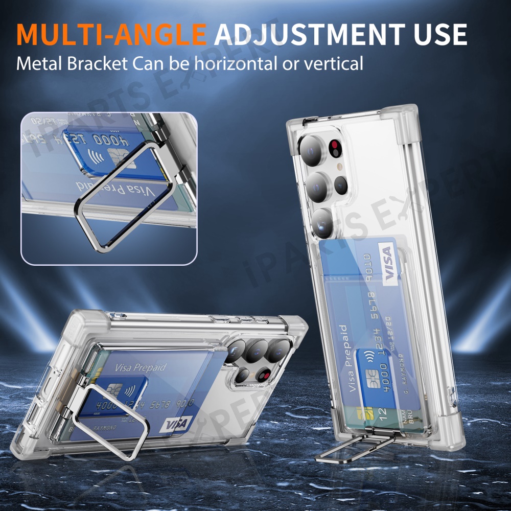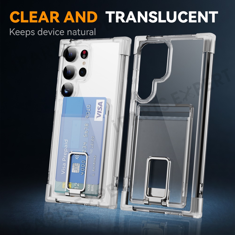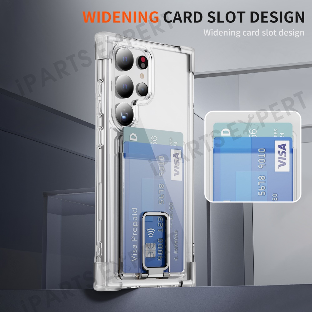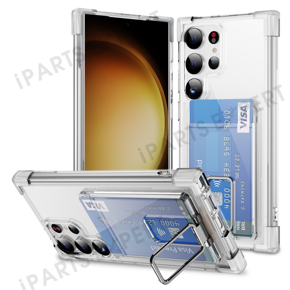 For Samsung Galaxy S24 Ultra Case Reinforced Corners TPU + Acrylic Phone Cover with Kickstand Card Holder - Transparent