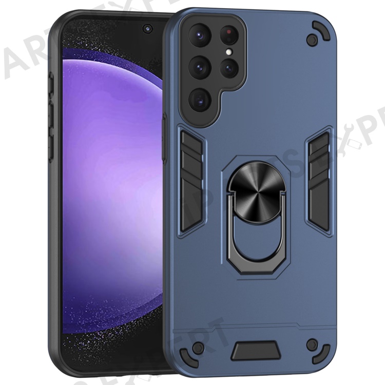 For Samsung Galaxy S24 Ultra Case Ring Kickstand PC+TPU Phone Cover Support Magnetic Car Mount - Blue